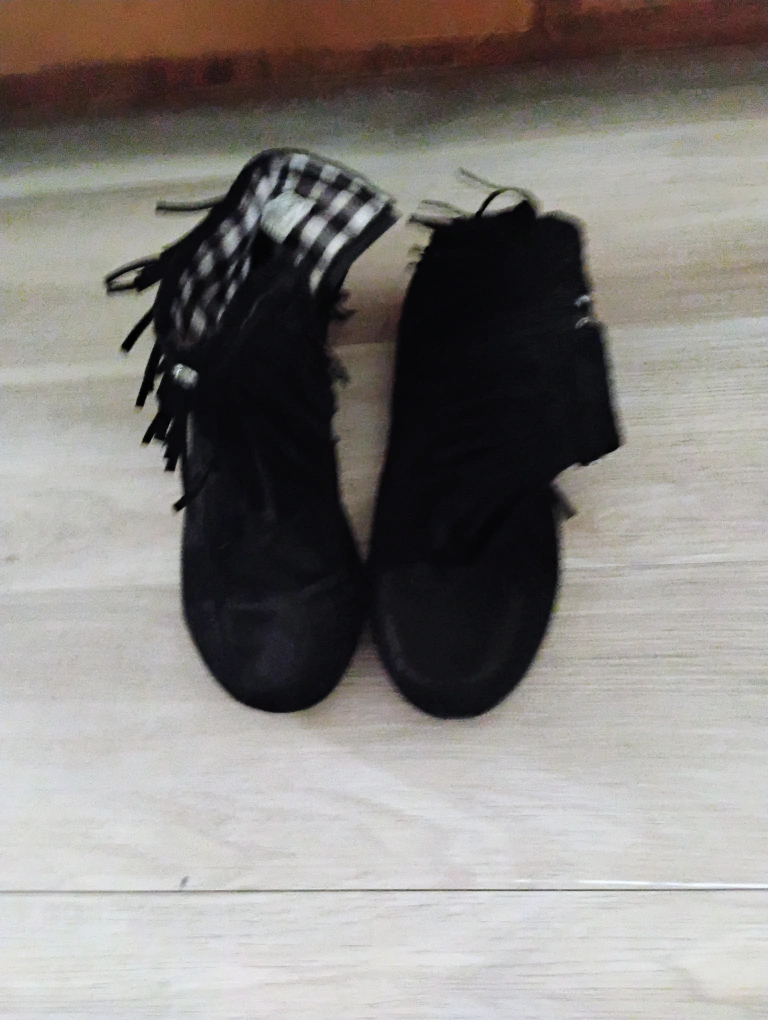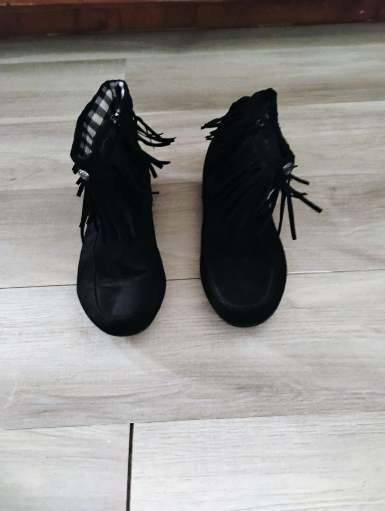 Cute black moccasin boots! They feature a fringe detail and a comfortable fit. Perfect for adding a touch of style to any outfit pickup only