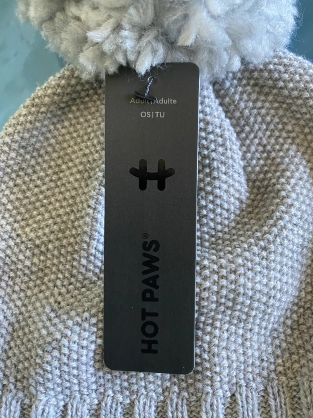 Keep your head warm with this Hot Paws toque! It's a stylish grey colour and has a cute pom pom on top. Size is adult one size fits all. Pick up Sage Hill Cash only Check out my other listings Pet and smoke free home