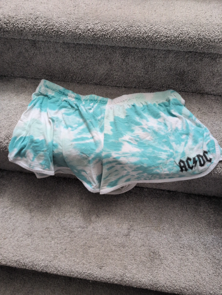 Cute AC/DC tie dye shorts! They're perfect for lounging around the house or wearing to a concert. The shorts are in great condition and feature the classic AC/DC logo on the side.