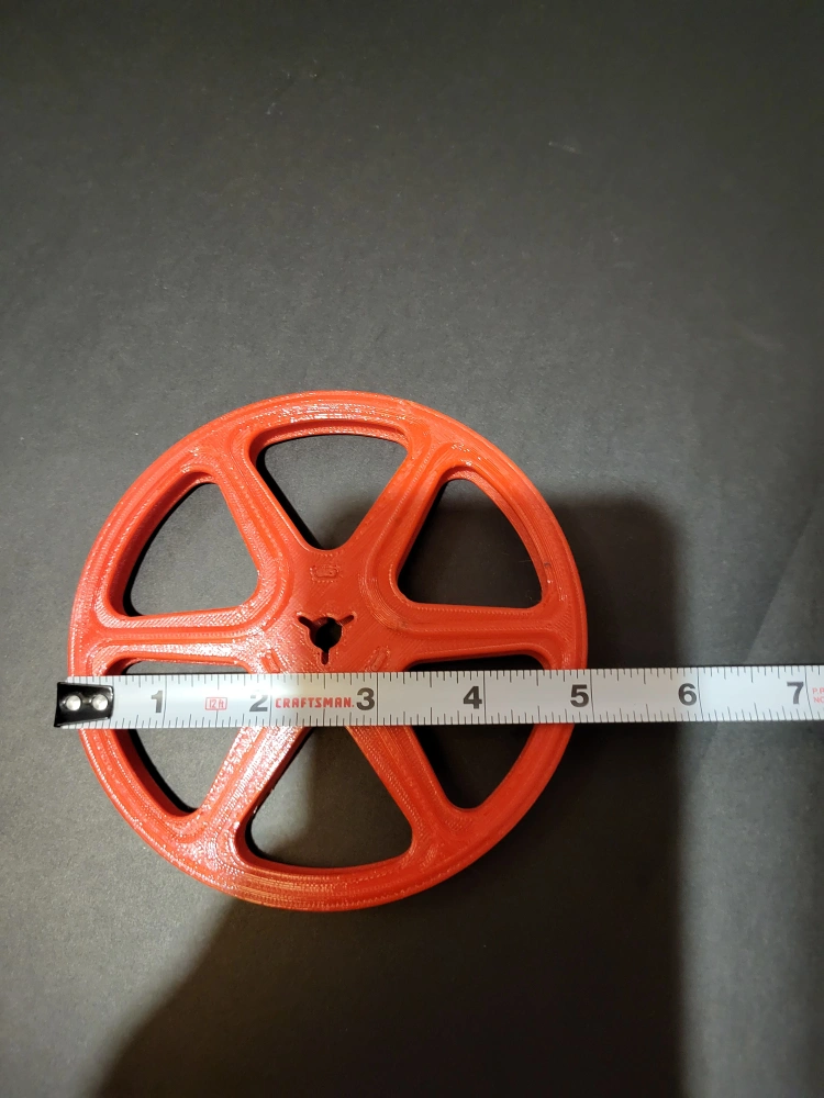Selling a 3D printed reel, it's red and measures about 6.5 inches in diameter. Perfect for various projects or hobbies! I have about 3 ready to go and can print more as needed in black.