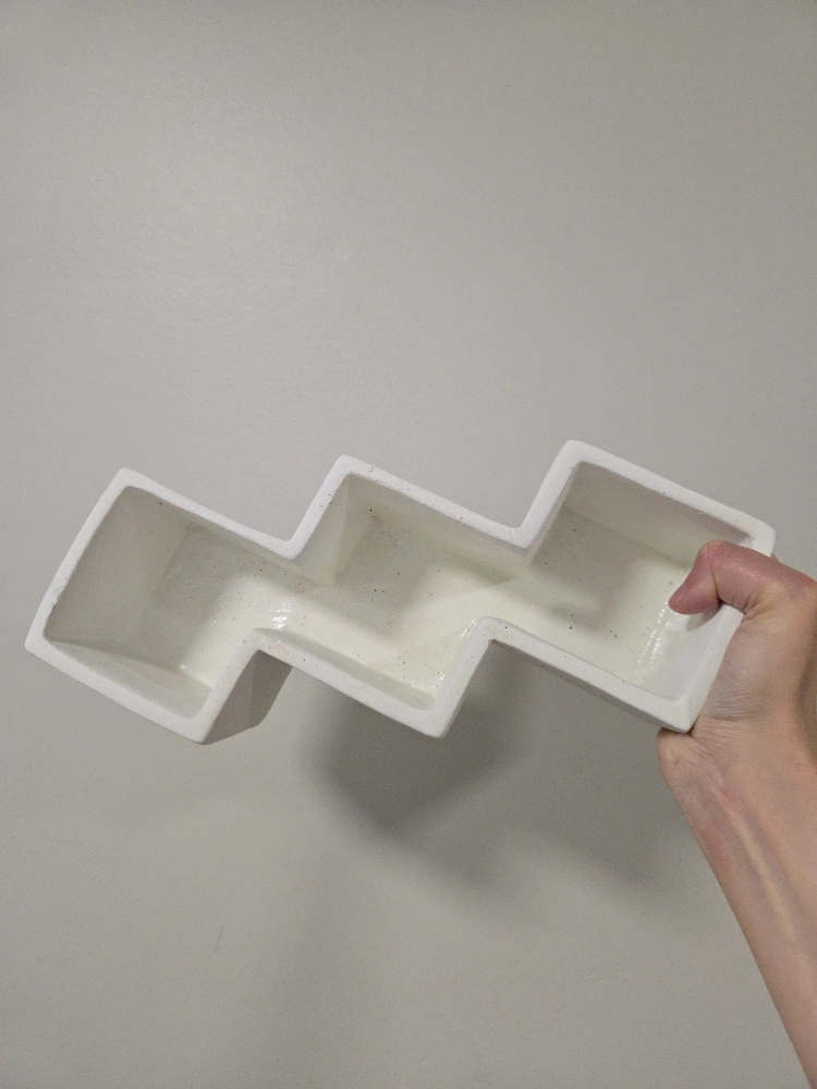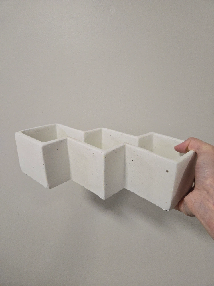 Selling a unique zig-zag shaped planter. It's perfect for adding a modern touch to your home or garden. It has three compartments for plants or other decorative items. It's in great condition and ready for a new home. 11.5"*4.5"*2.5" Never used, two available. Pickup nearby Finch & Don Mills. Check my other lists to see more items. Thank you!