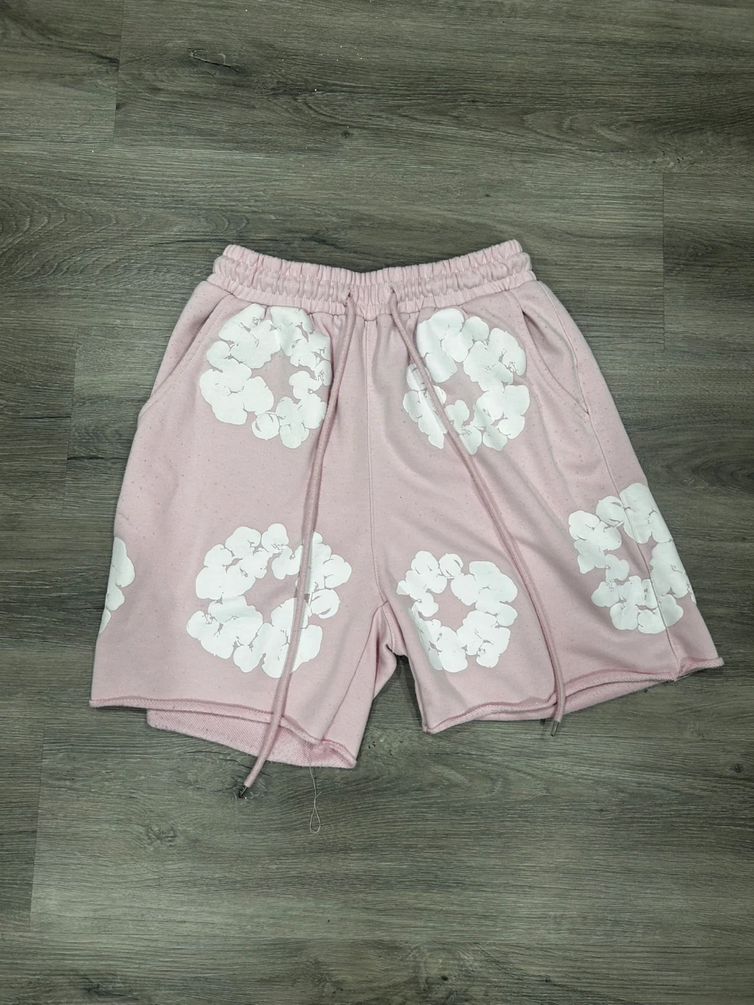 These are a pair of Denim Tears shorts in a light pink colour. They feature a floral design and are a size small. Great for casual wear! they are used
