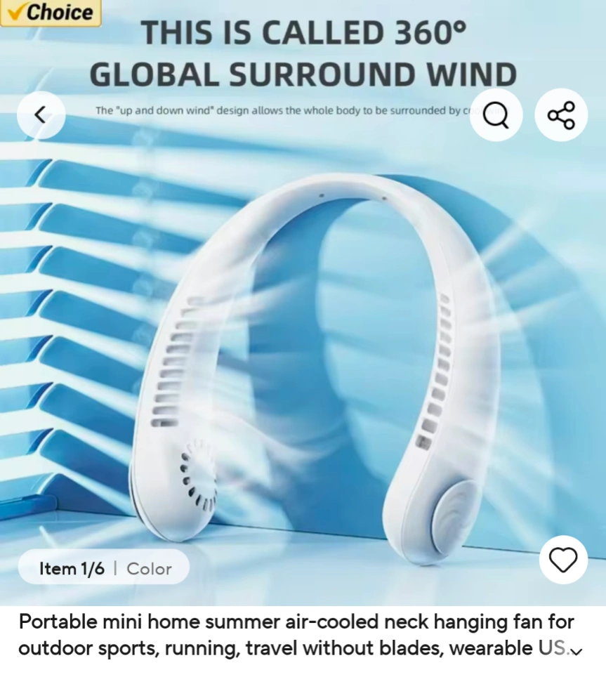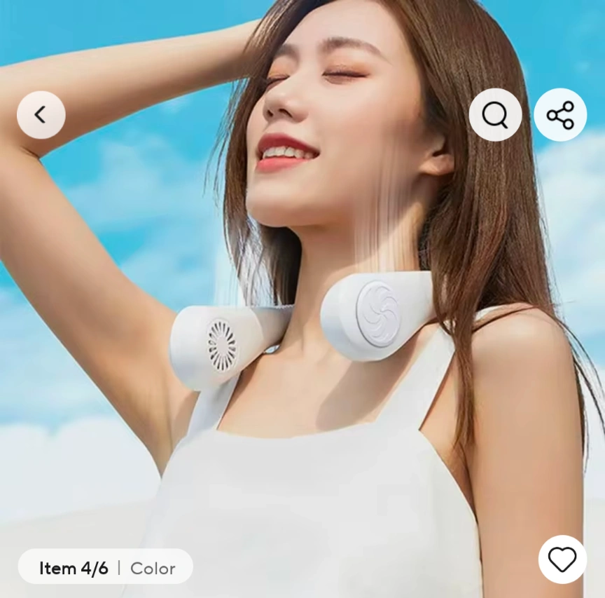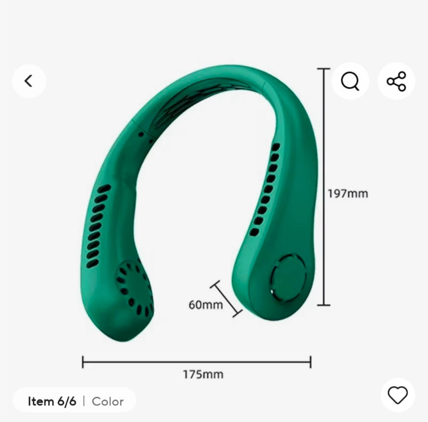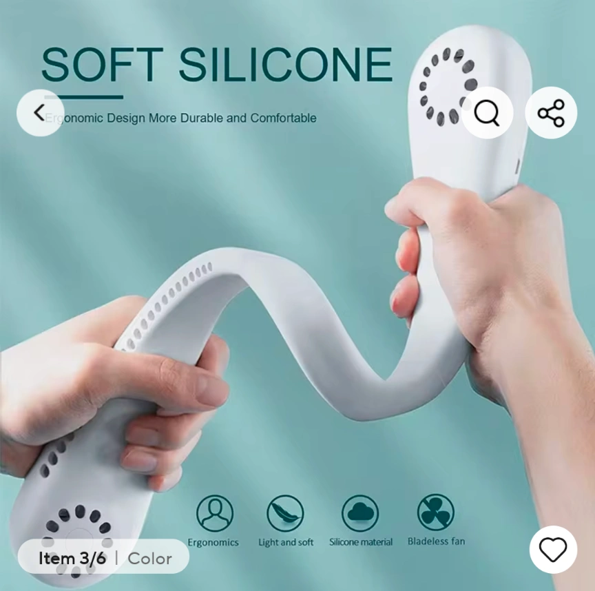 Keep cool on the go with this portable mini neck hanging fan! It's perfect for outdoor sports, running, and travel. The bladeless design ensures safety and comfort, and the soft silicone material makes it durable and comfortable to wear. Enjoy a 360° global surround wind wherever you go!