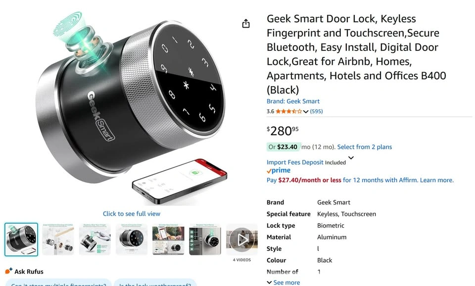 Combines 5 keyless entry methods into 1 smart lock: FingerPrint, Passcode, RFID Card, Emergency Key, Mobile Application. Highly accurate fingerprint identification unlocks the door within 0.3 seconds, and stores up to 120 unique fingerprints. Pair with Geek Smart WiFi Gateway (sold separately) to control your lock remotely. Real-time access notification and Access Log let you know who comes and goes from anywhere using the Geek Smart App. Features anti-lock, incorrect entry alarm, and automatic locking. Within minutes you can swap out your basic lock for the Geek Smart Lock. Wire-free technology makes installation quick and easy. All it needs is just a small screwdriver; in about 15 minutes you can install a smart lock for your home or office. The lock is made of high-quality aluminum alloy material and streamline design. The intuitive LED touch pan makes it more luxury and fashionable. Smooth feel and suitable size, easily handled by olds and kids too. Pick up in Pickering by Whites Road and Sheppard Ave.