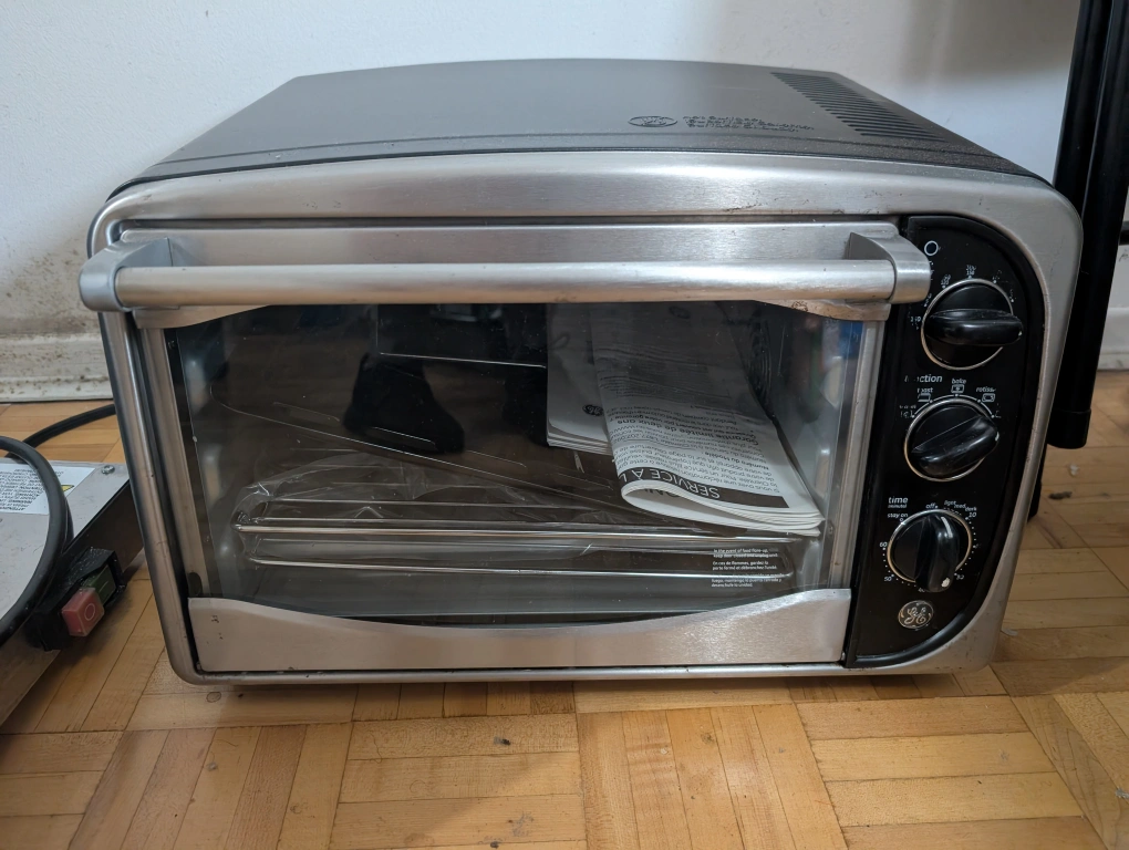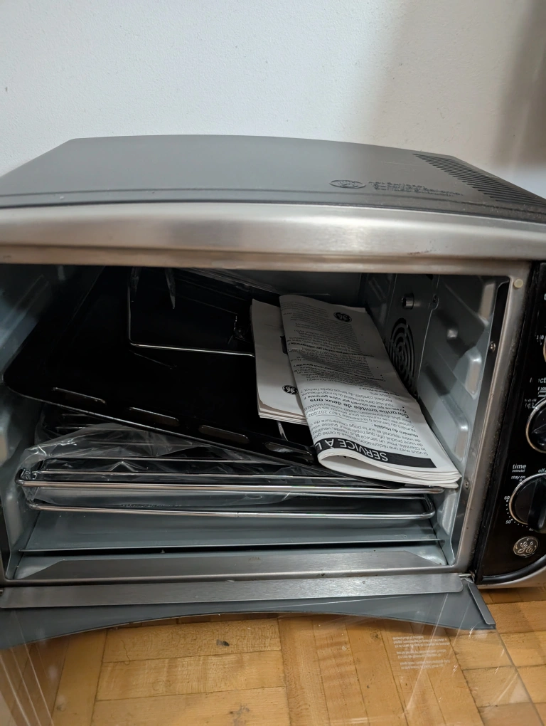 Selling a GE toaster oven. It has bake, toast, and rotisserie functions and RESTAURANT quality brand new OMCAN dough roller. ESTATE SALE we have everything you need to open up your own kitchen! send me a message and set up an appointment!