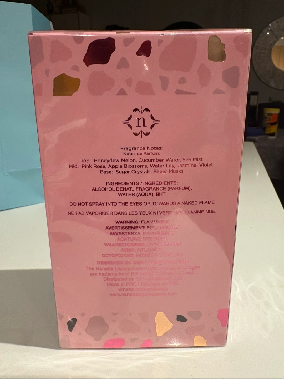 Selling a new Nanette Lepore Beauty Abroad Eau de Parfum! It's a 3.4 oz (100 ml) bottle. The fragrance features notes of honeydew melon, cucumber water, sea mist, pink rose, apple blossom, water lily, jasmine, and violet. A lovely scent! Original price $80+