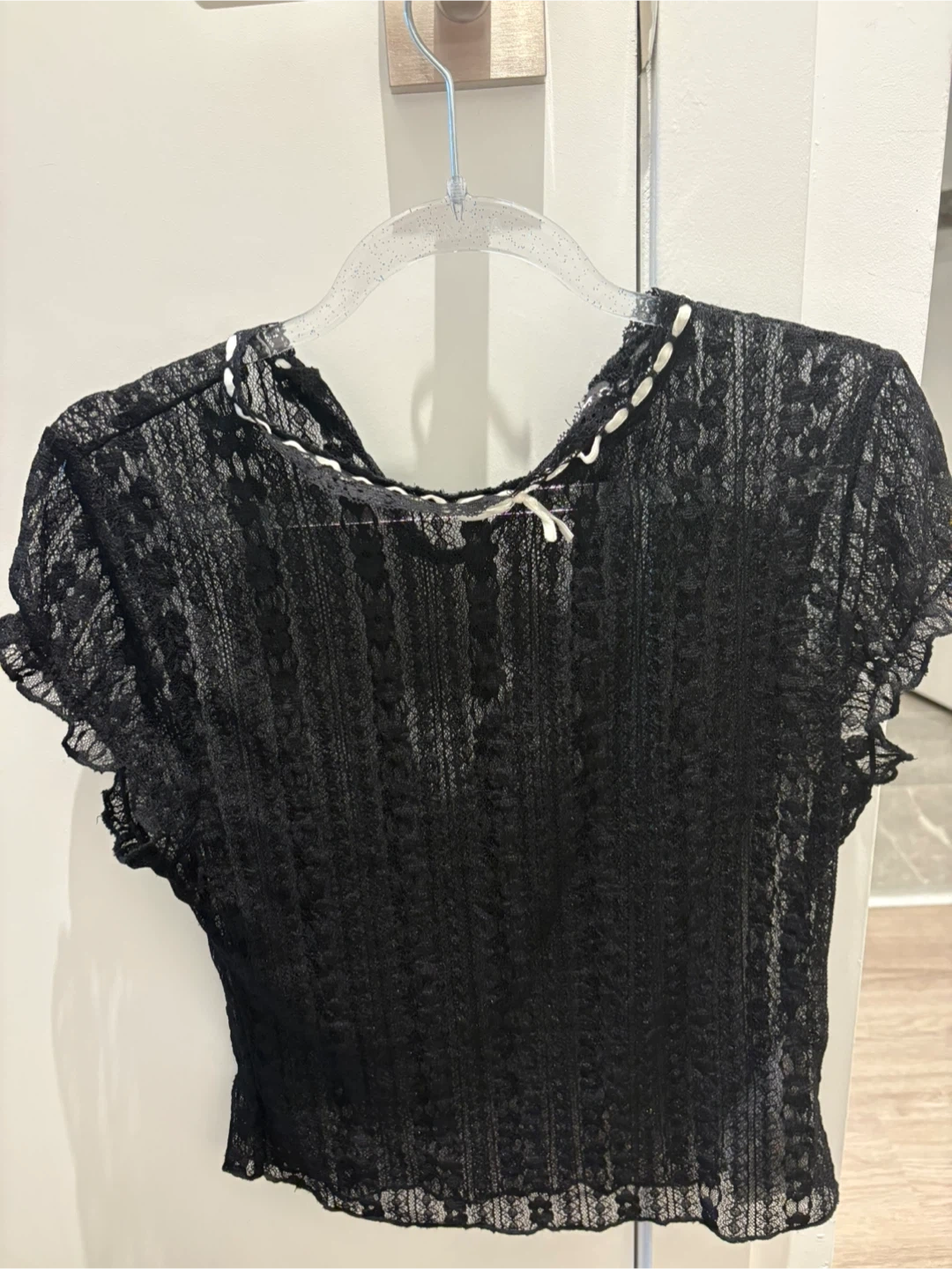 Selling a cute black lace top from Motel! It's a size small and in great condition. Perfect for layering or wearing on its own! Its good to wear for date night! I got this from motel rocks! Its not on the site anymore! Pick up and cash only!