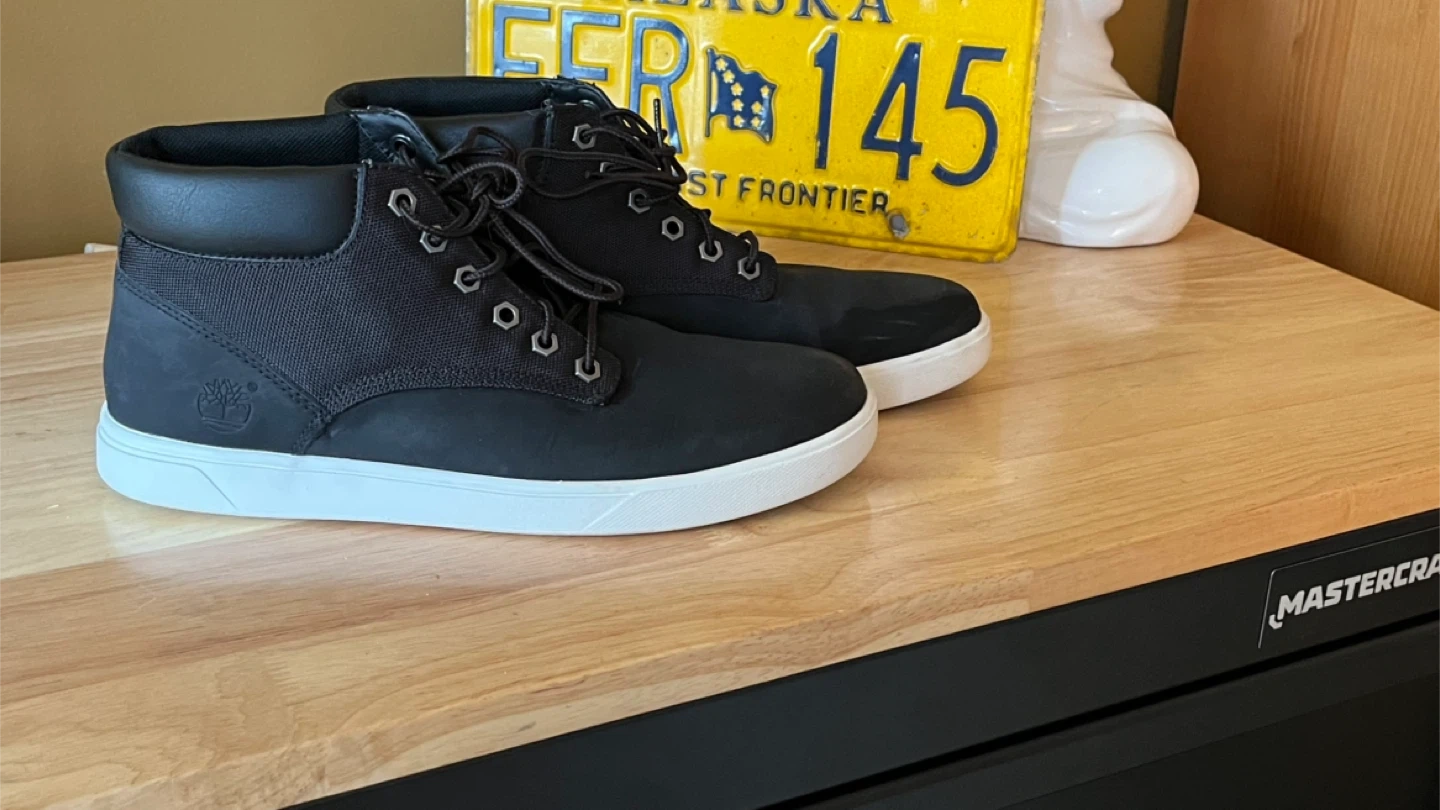 Selling a pair of Timberland ankle boots in black. They are a size 8 US. These boots are in great shape and ready for a new home!