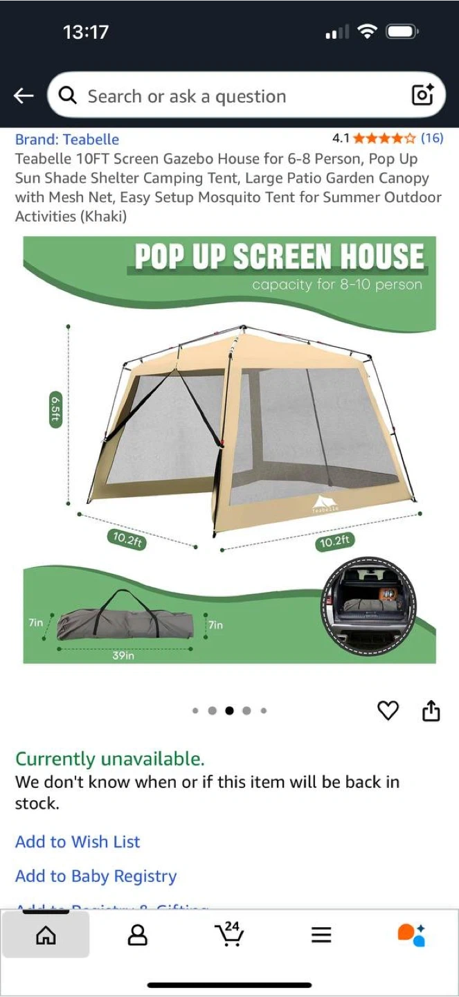 Teabelle 10FT Screen Gazebo Tent โ Khaki ๐๏ธ ๐ฆ Brand new in box โ $110 Spacious pop-up screen house, perfect for camping, patio, garden, or summer outdoor activities. Provides shade and protection with mesh netting โ keeps insects out while allowing fresh air to flow. Quick and easy setup! โ Brand: Teabelle โ Size: 10FT (fits 6โ8 people) โ Color: Khaki โ Condition: New in box ๐ฒ Price: $110 ๐ Pickup in Waterloo ๐ Check my other listings for more great deals!