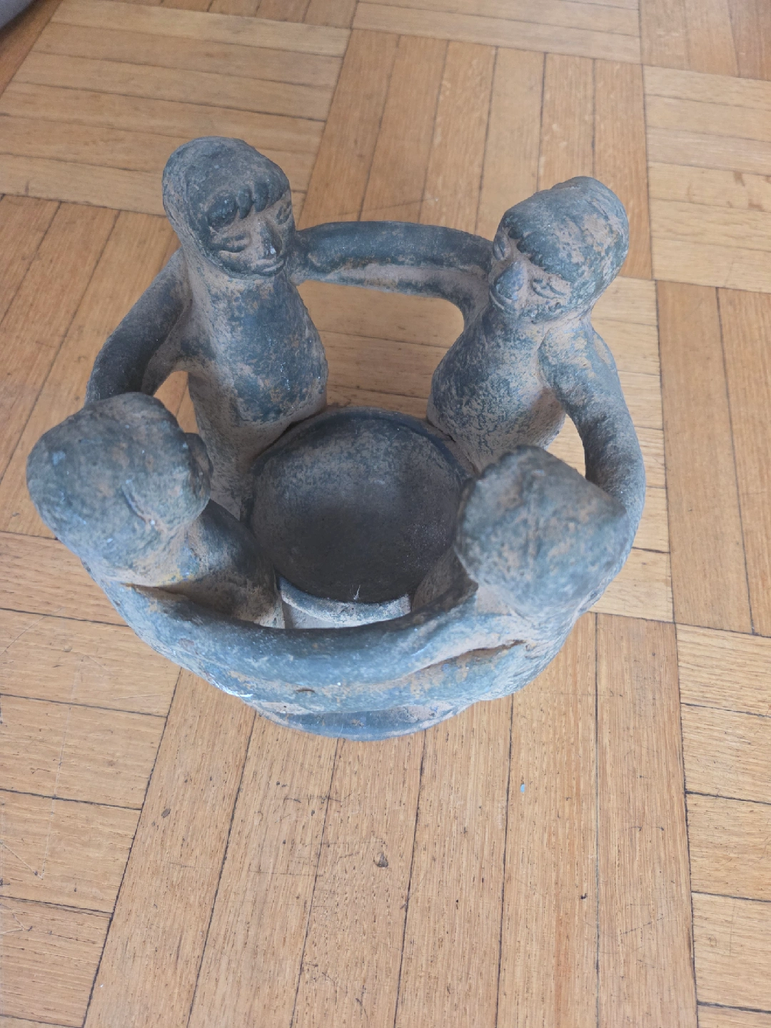 Selling a sculpture Circle of friends, that would be perfect for your home decor! you can put a candle in the middle. It features four figures holding hands in a circle around a bowl-shaped center. It has a unique, rustic look and feel