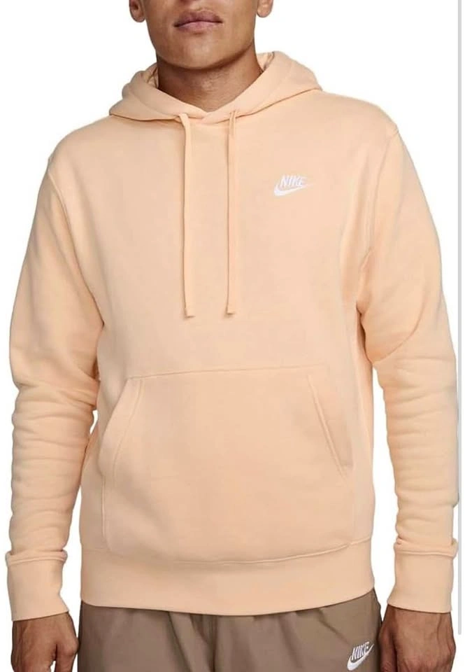 Nike hoodies for men combine classic style with the soft comfort of fleece for an elevated look that you can wear everyday. Nike sweatshirts for men are lined with a brushed-back fleece material that keeps you warm. The fleece feels soft against the skin during wear. The men's hoodies contain a drawstring rim that offers adjustable coverage. Customize your fit to be loose during relaxation or fitted during play. Large kangaroo pocket on the front side of the hoodie can keep hands warm or store small items during movement. The Nike hoodie lays loosely against the body for a relaxed fit. The ribbed hem and cuffs allow the men's sweatshirt to feel secure while maintaining comfort. Size small