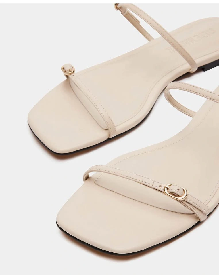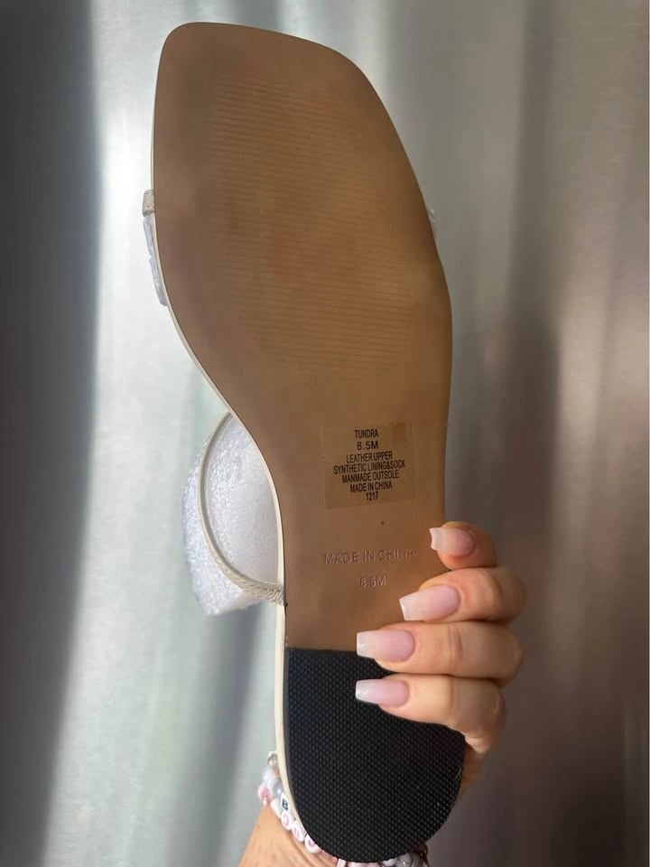 The TUNDRA sandal offers a comfortable and stylish choice for any summer outfit. Its flat design and slide style make it easy to wear, while the thin straps and square toe add a sleek touch. Perfect for all-day wear and versatile for both casual and dressy occasions. Leather upper material Synthetic lining Synthetic sole 0.5 inch heel height Imported Size 8.5