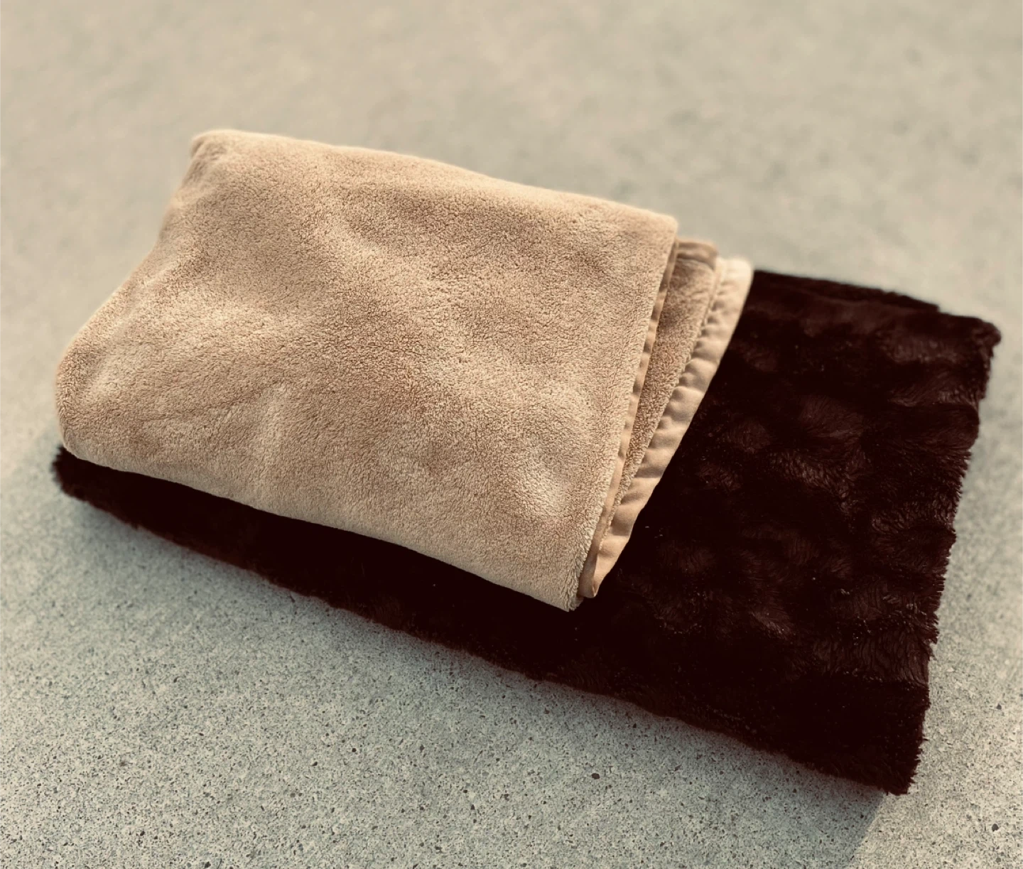 Two cozy throw blanket with a soft, plush texture! It features a beige one and a brown one, perfect for adding warmth and style to your living space. Great for snuggling up on the couch!