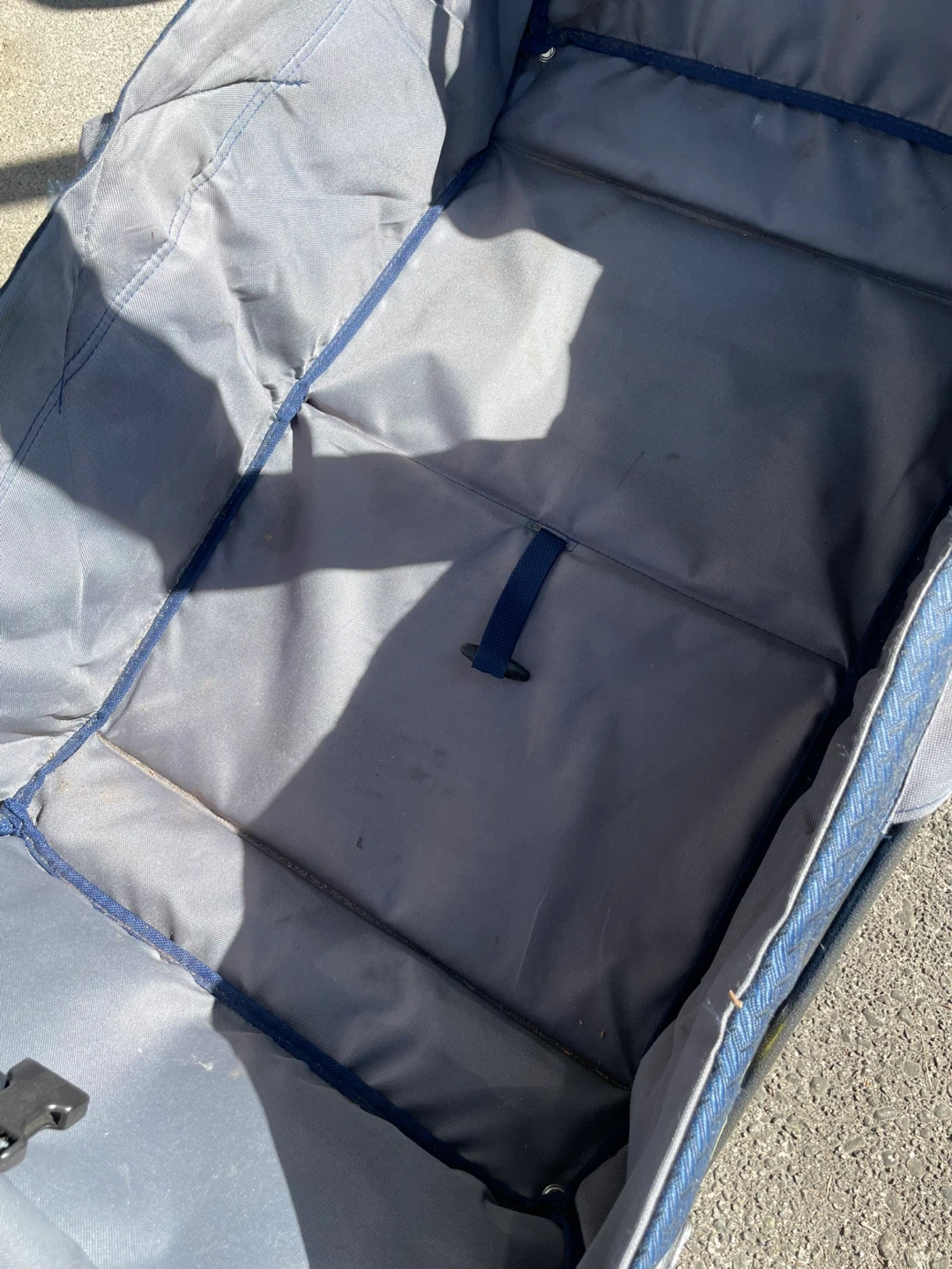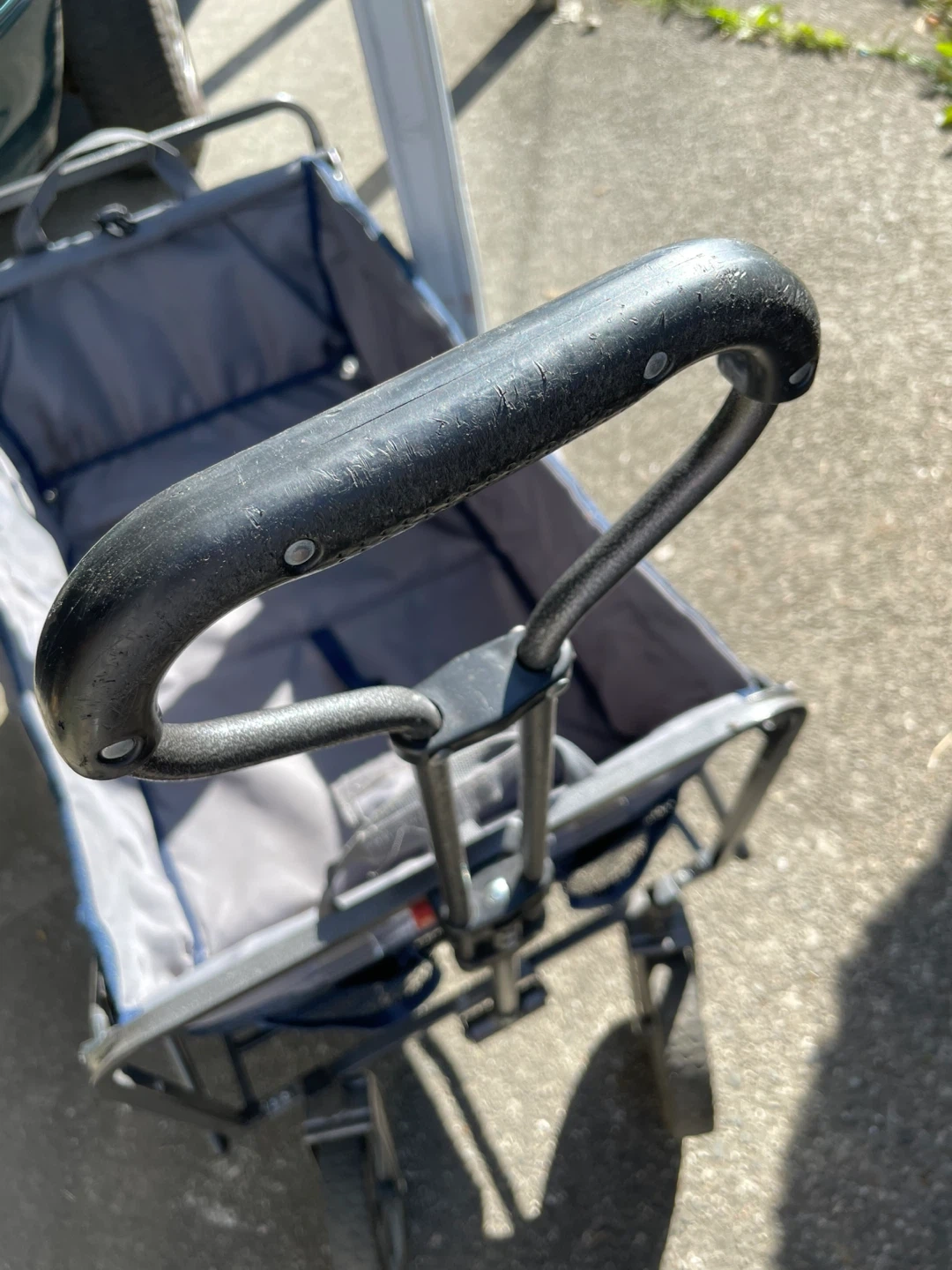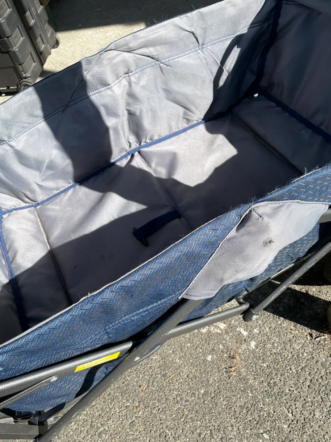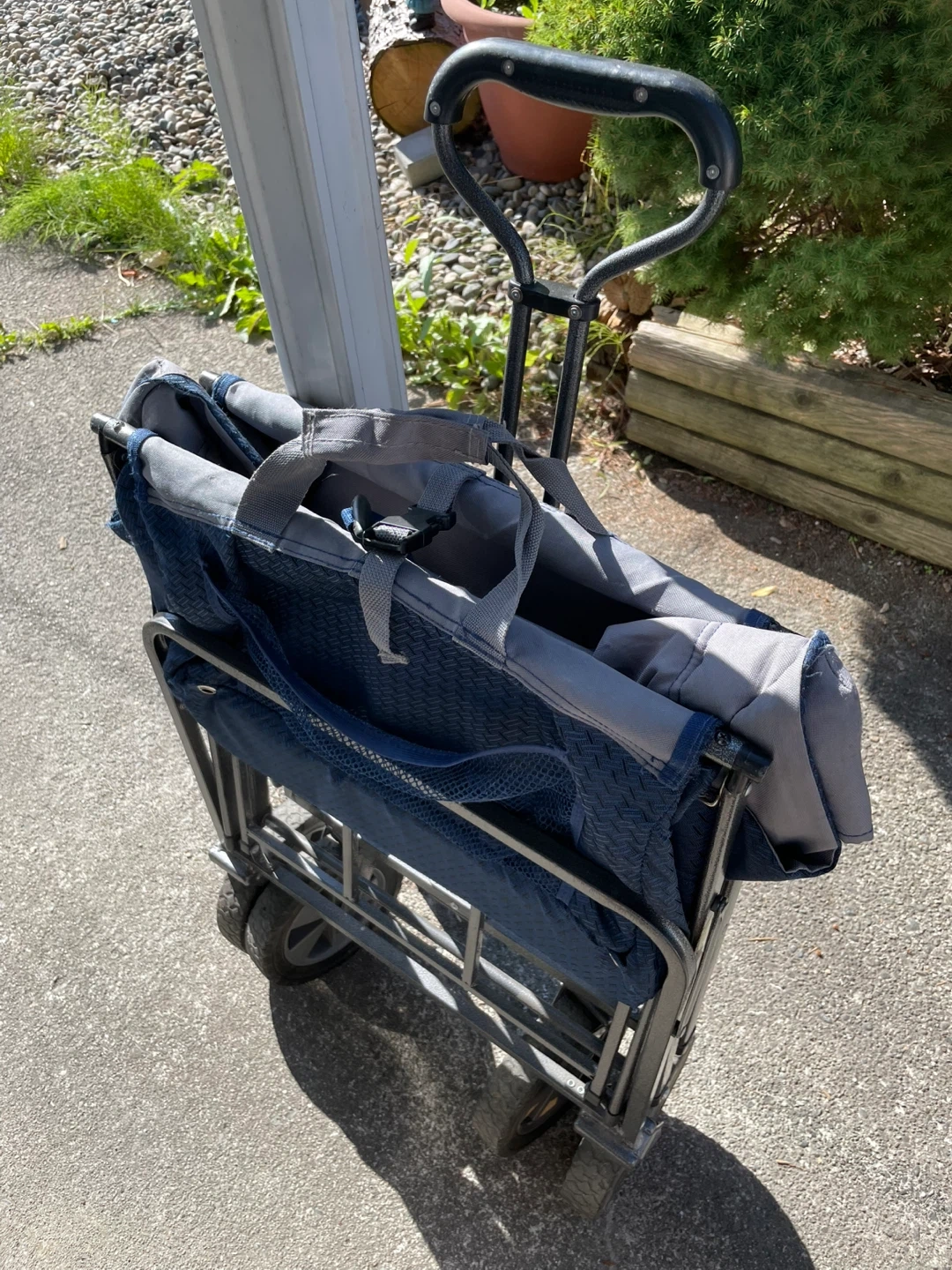 Selling a folding wagon cart in blue! It's super handy for carrying groceries, beach gear or sports gear or anything else you need to lug around. Folds up easily for storage and transport. Minor wear from use but purely cosmetic and no issues with the wheels or functionality.