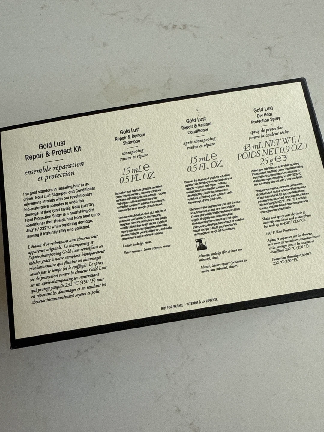Selling a Oribe Gold Lust Repair & Protect Kit. This set includes the Gold Lust Repair & Restore Shampoo, Gold Lust Repair & Restore Conditioner, and Gold Lust Dry Heat Protection Spray. It's perfect for repairing and protecting your hair! Great deal and great for travelling. Pickup location: Langley (2 mins from the Langley Events Centre) OR Pickup Richmond on Sundays and Mondays Thank you!
