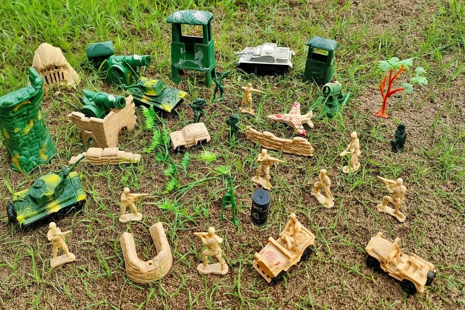 Get ready for battle! This huge set includes 147 pieces of classic army fun. Perfect for kids, collectors, or anyone who loves setting up epic warzones. ๐ช Includes: Green & tan soldiers in multiple action poses Tanks, jeeps, cannons & jets Watchtowers, bunkers, barricades & sandbags Scenery pieces (trees, walls, and more) Everything is in good used condition, clean, and ready for action. Great for imaginative play, dioramas, or as a nostalgic throwback.