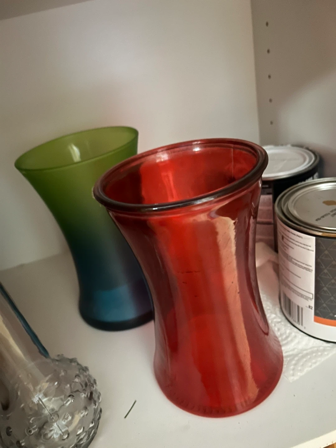 Selling a lovely red glass vase! It would look great with a bouquet of flowers. It's in good condition and ready for a new home