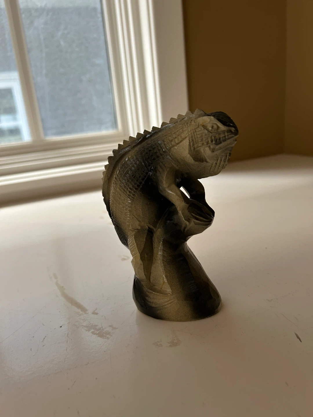 A unique carved stone iguana figurine! This piece would look great on a shelf or desk. It's in good condition and ready for a new home