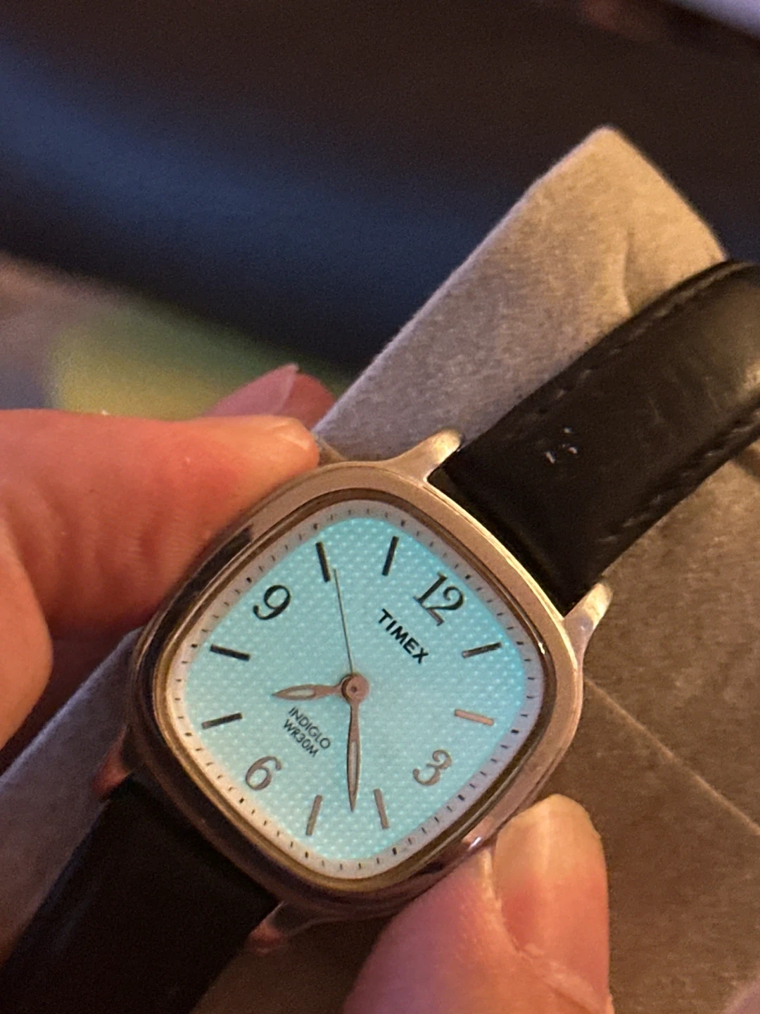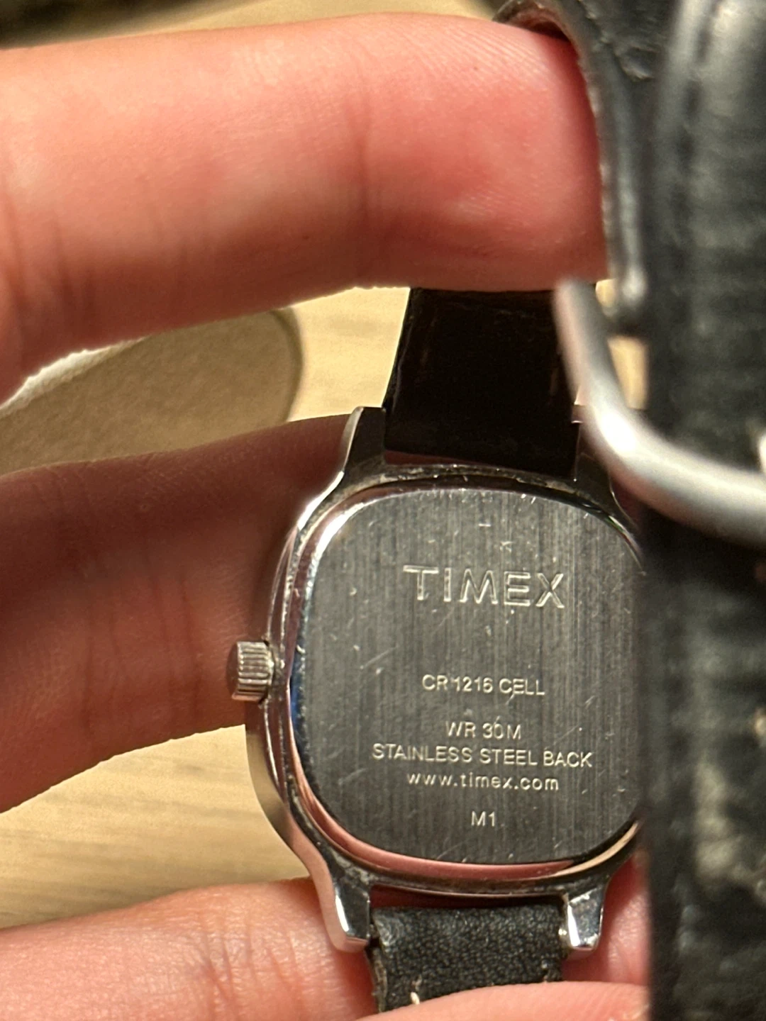 Selling a Timex Indiglo WR 30M watch! It has a stainless steel back and a leather strap. Perfect for everyday wear!