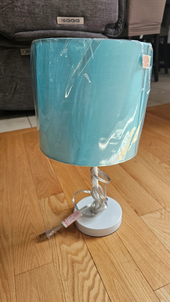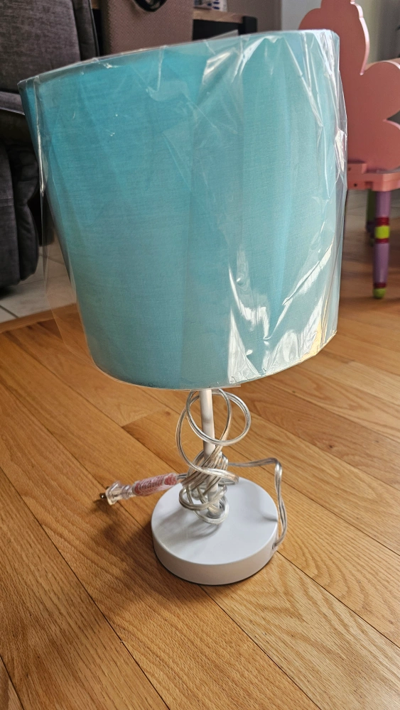 Selling a cute turquoise table lamp! It's in great condition and would look lovely in any kids room. The base is white, and the shade is a soft turquoise colour.