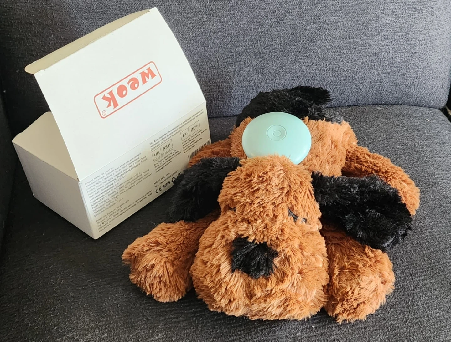 Dog soothing toy with a heartbeat - in great condition and comes with the original box. Gently weighted. My dog didn’t like it at all.