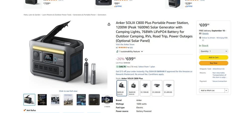 Anker SOLIX C800 Plus Portable Power Station, 1200W (Peak 1600W) Solar Generator with Camping Lights, 768Wh LiFePO4 Battery for Outdoor Camping, RVs, Road Trip, Power Outages It's brand new still sealed / unopened. Pick up and cash payment only.