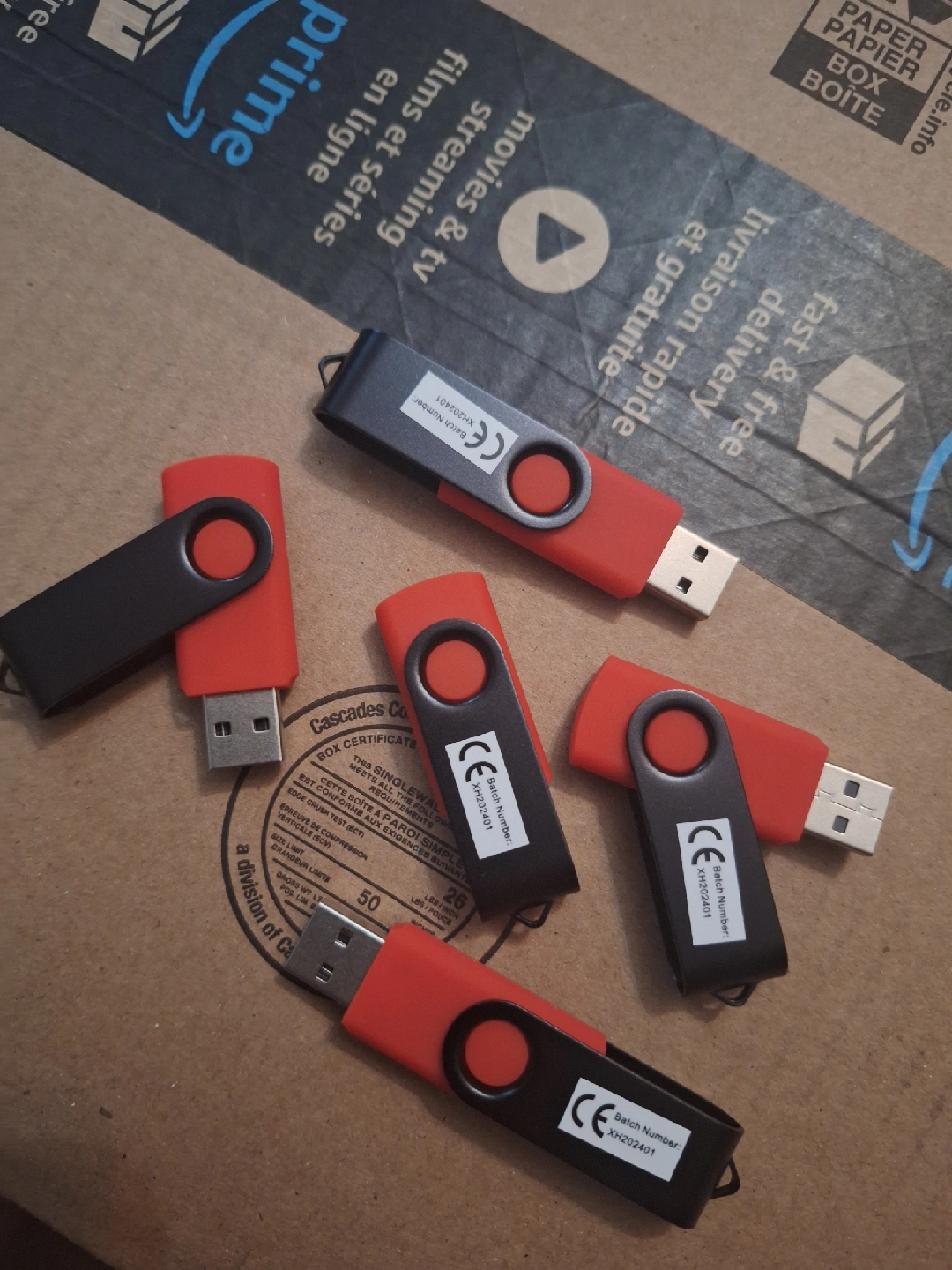 Selling a few USB flash drives. They're red and black, and ready to use for your files! Each flask drive has 16GB of space on it. $3 each or 2 for $5