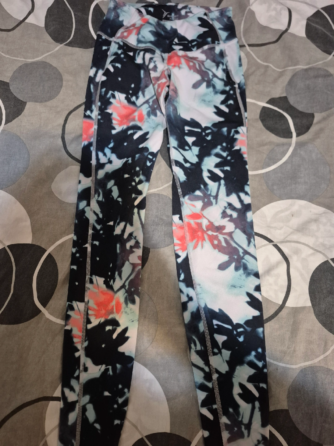 These are Old Navy Active Go-Dry leggings in size XS. They have a fitted style and are perfect for workouts or casual wear. The material is comfortable and breathable, making them great for any activity