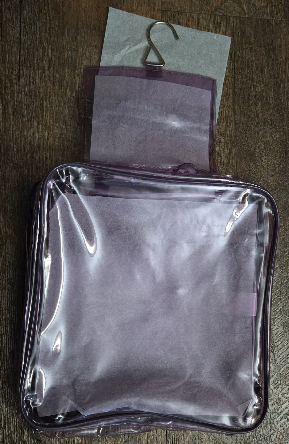 I have a purple hanging travel toiletry bag for sale. It's perfect for keeping your toiletries organized while you're on the go. It has multiple compartments and a hook for easy hanging