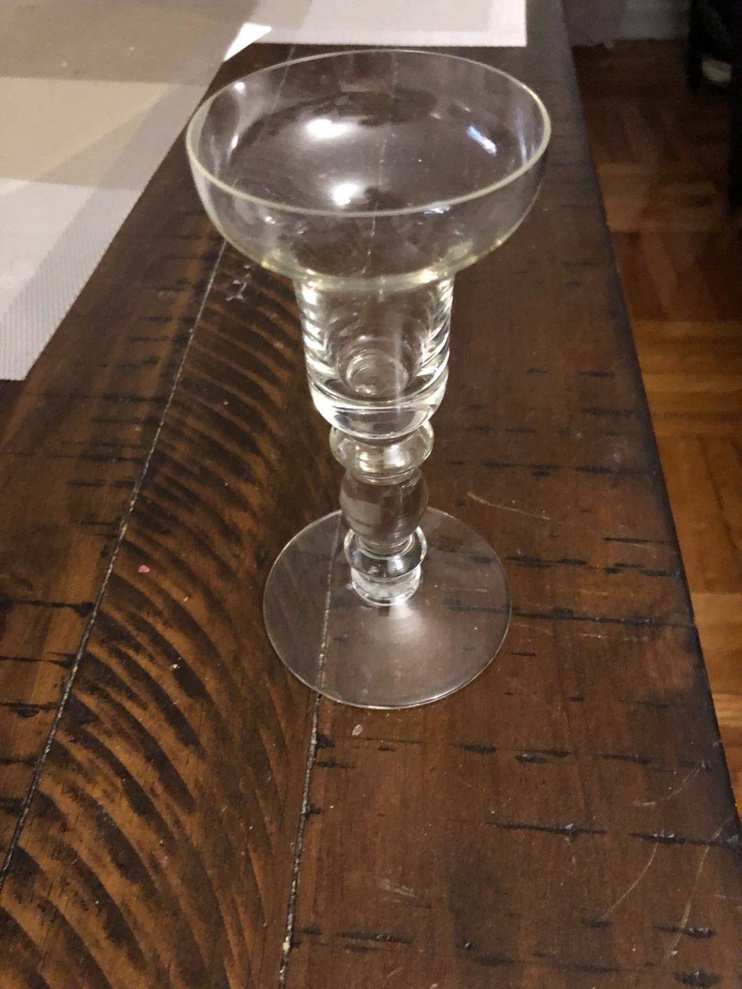 Free, clear glass candle holder ! It's in great condition and would look lovely with candles or as a decorative piece on its own. Its unique shape adds a touch of elegance to any space