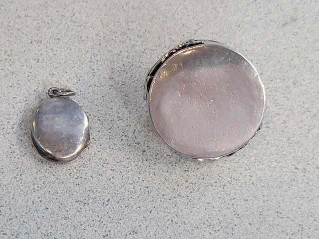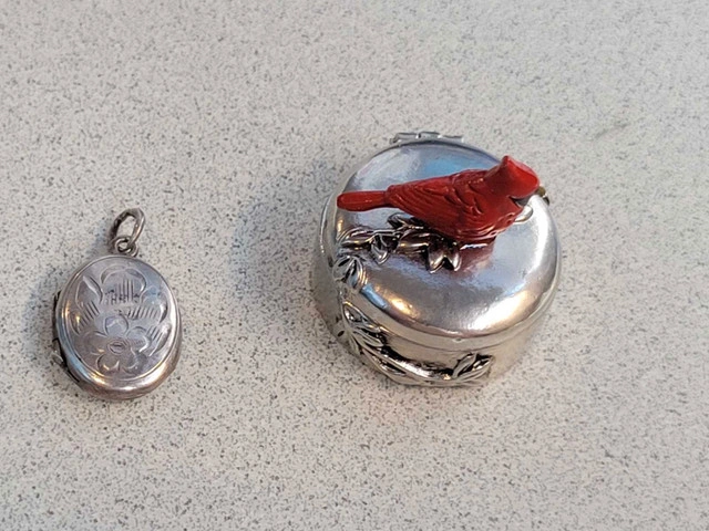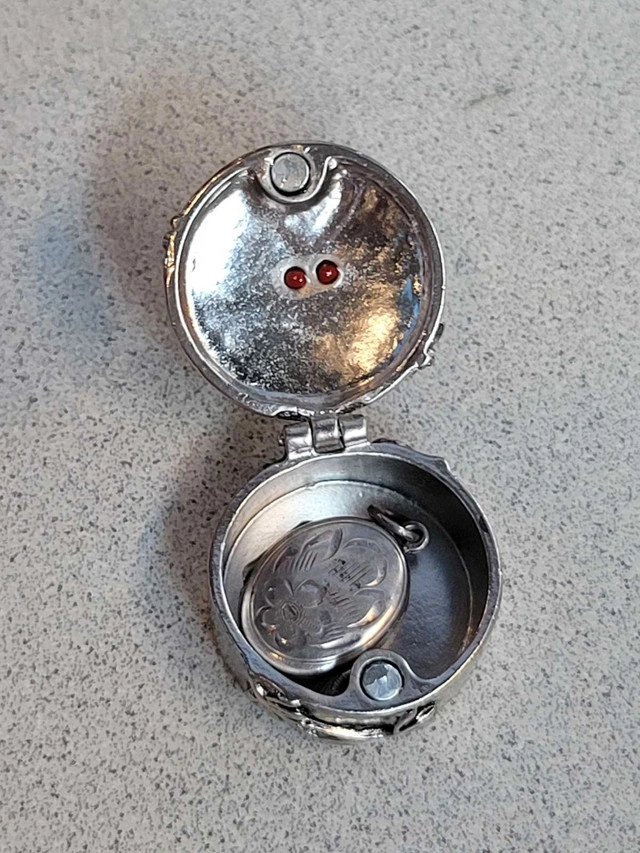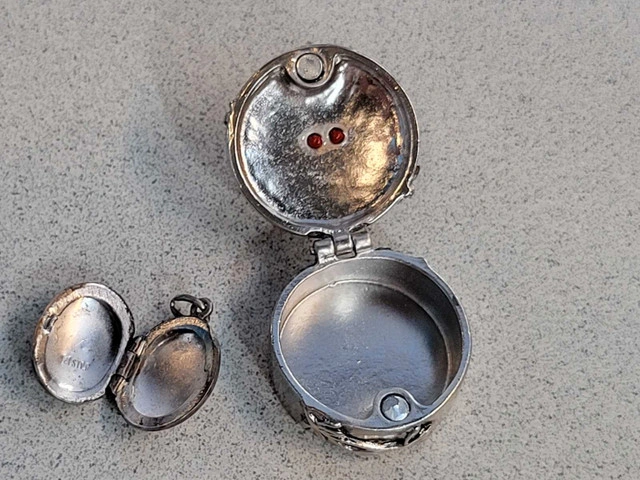 These 2 Are being sold as a lot. The locket is old but the pill box is more modern with a magnetic closure. Let me know if you're interested!