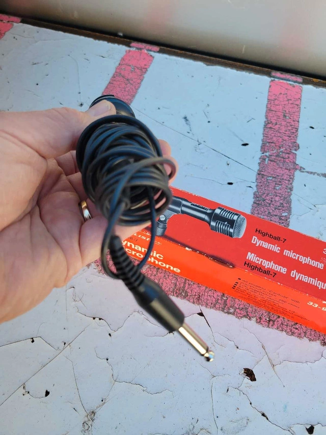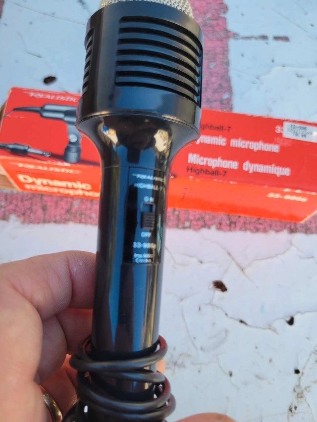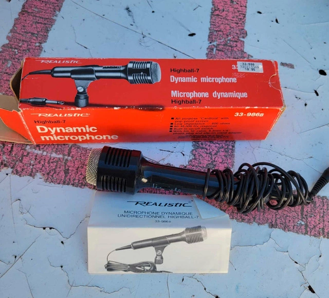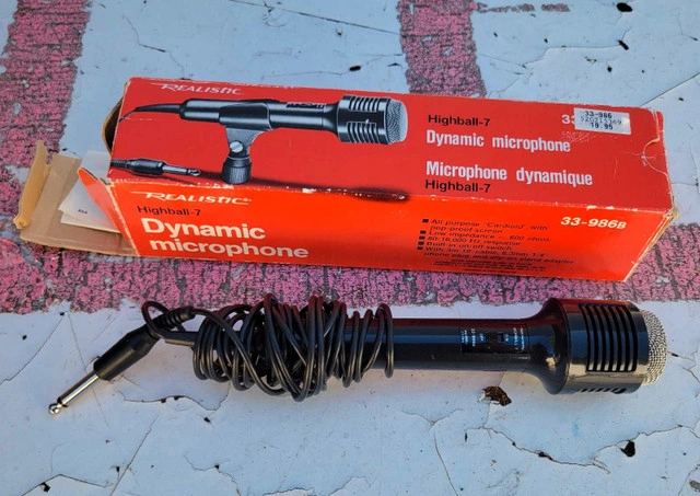 The Vintage Realistic Highball 7 Dynamic Microphone 33-986 is a classic piece of broadcasting equipment, suitable for various audio applications. With its medium-sized diaphragm and dynamic transducer type, this black microphone by Realistic delivers professional sound quality. Featuring an on/off switch for added convenience, this wired microphone is a must-have for any audio enthusiast or professional broadcaster. Made in Taiwan, this unit is a rare find for collectors and music lovers alike.
