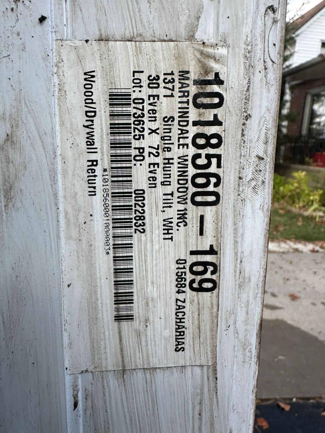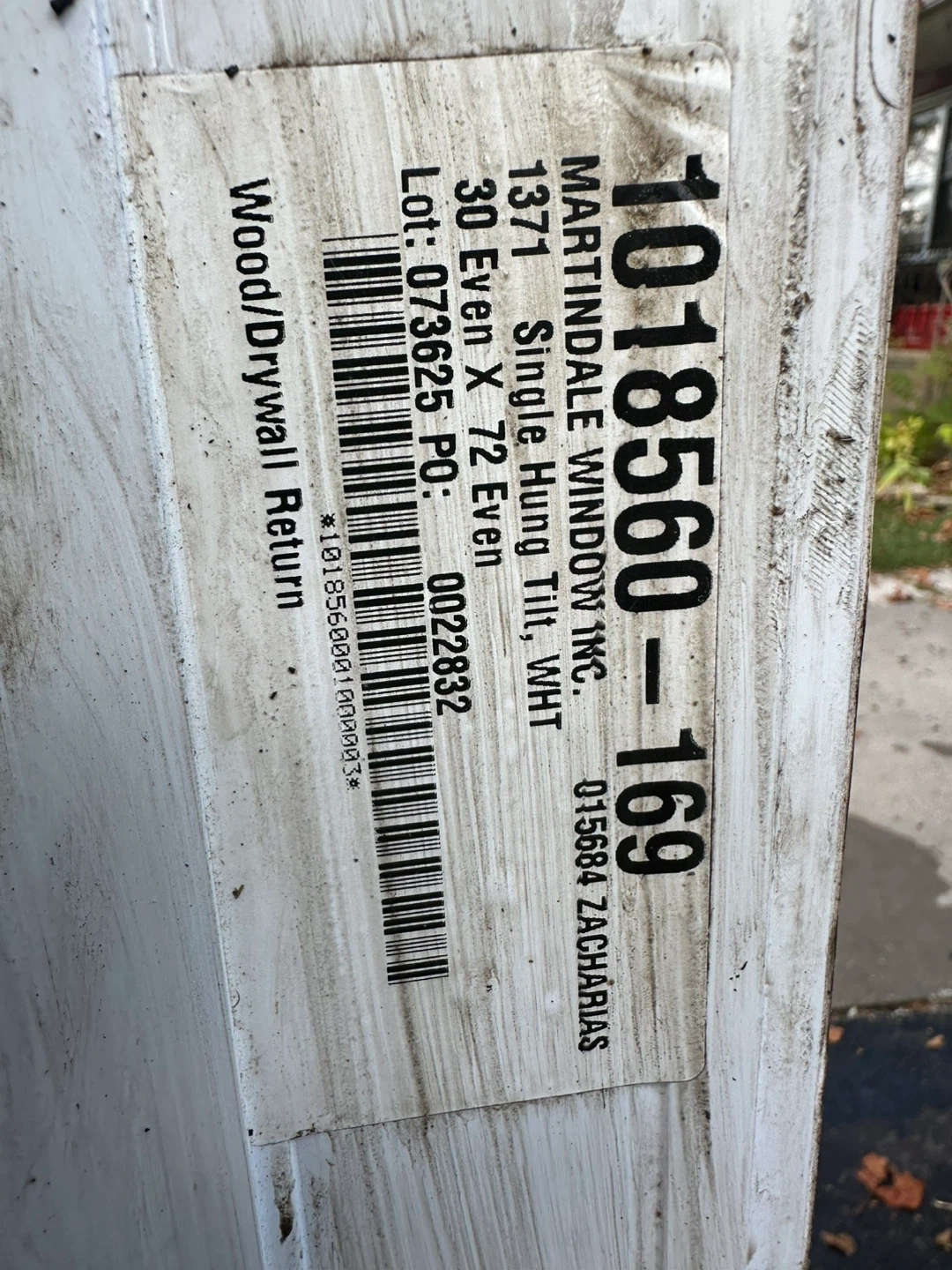 Selling a Martindale window, single hung tilt style in white. It's a size 30 Even X 72 Even. Great for a home renovation project
