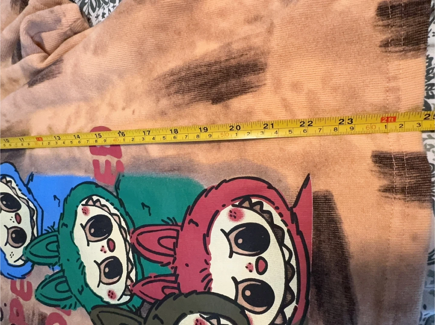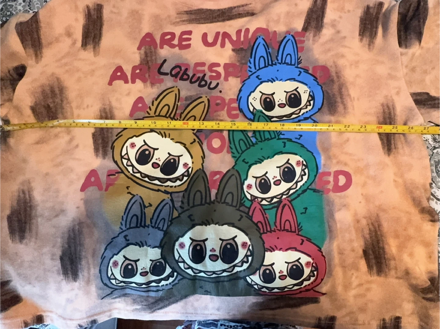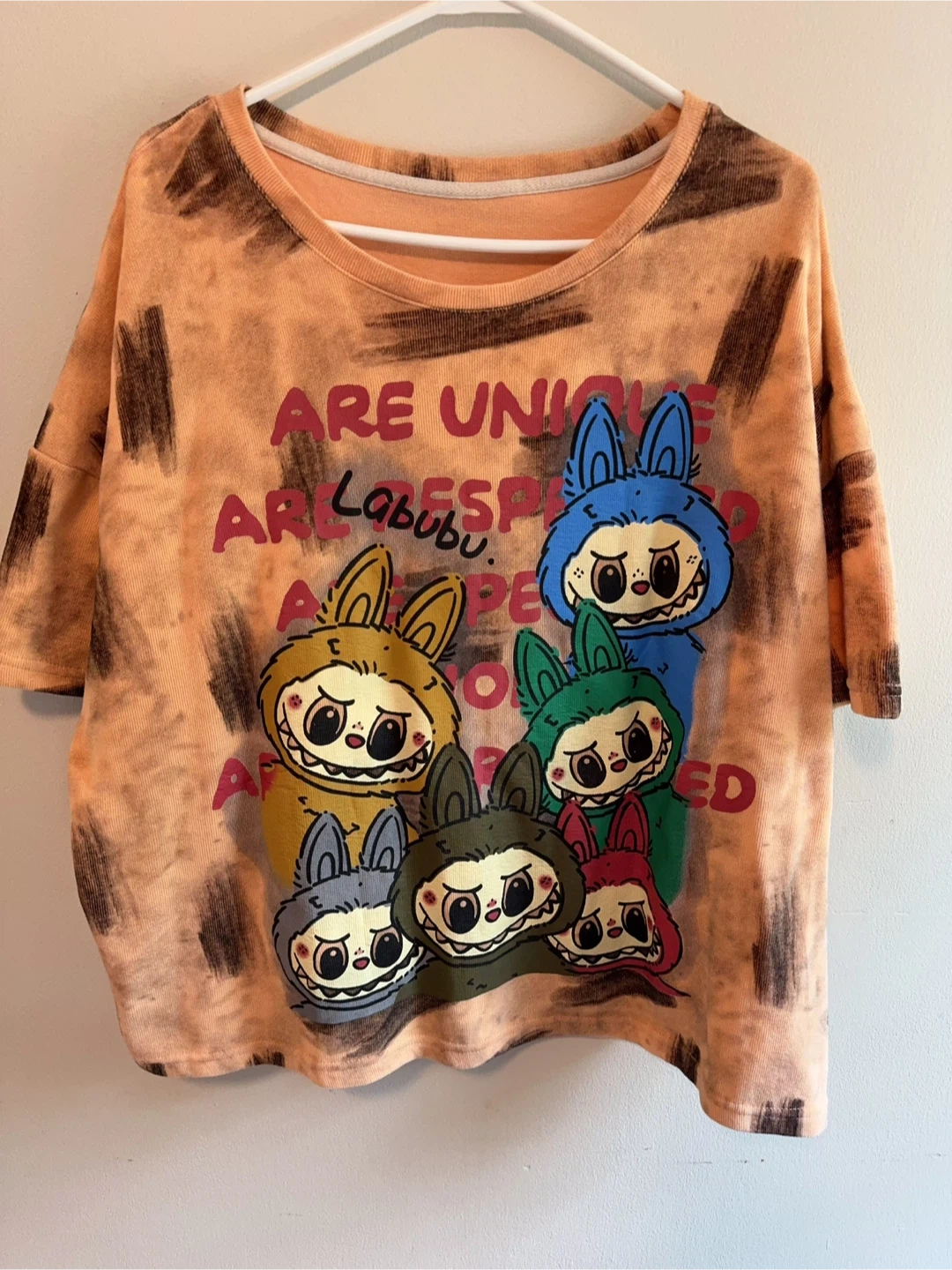 Selling a cute Labubu graphic t-shirt and pants set! The shirt has a fun design with colourful characters and the pants match the shirt, making it a super comfy and stylish set for lounging or casual wear One size, measurement in pics, could fit from 90lbs to 200lbs.