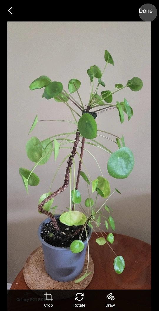 Looking to re-home this Pilea peperomioides plant. It's easy to care for and adds a touch of greenery to any space. 22 inches tall with 2 additional smaller plants.
