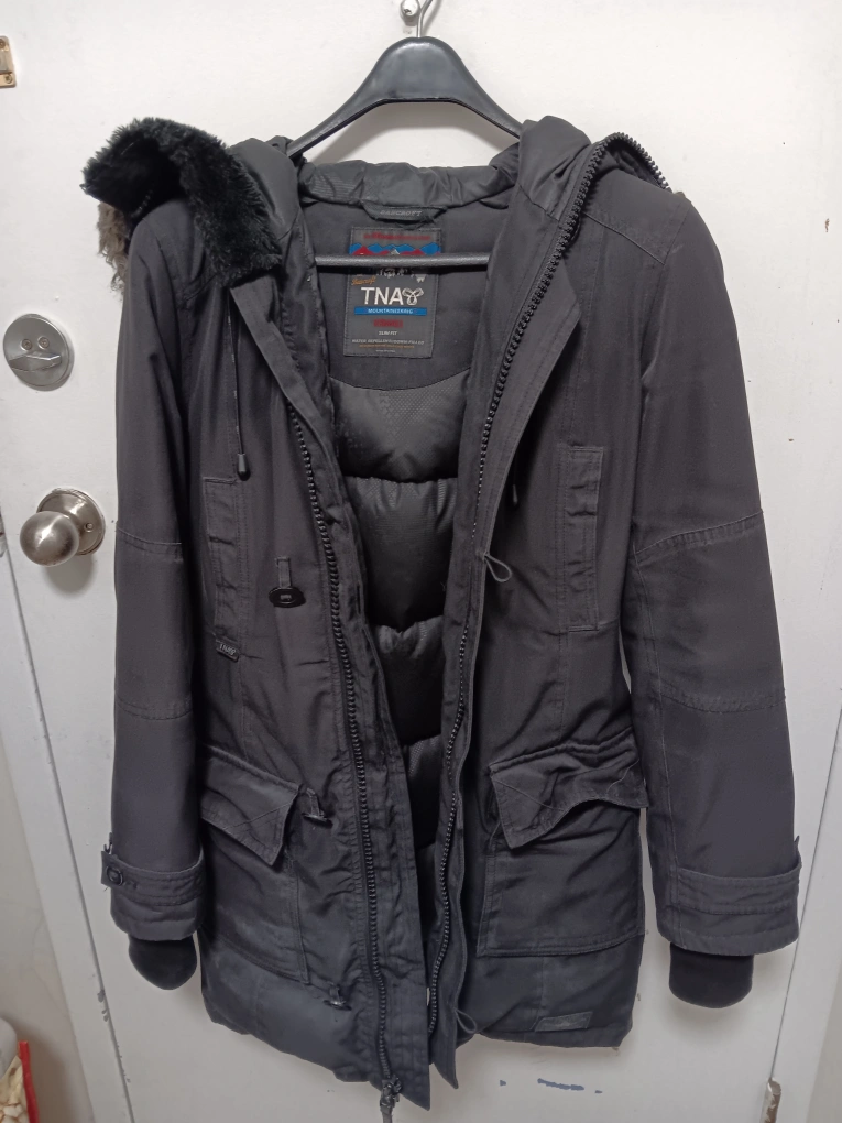 Selling a TNA Bancroft parka in size XS. It's a slim fit and designed for the cold north! It's water repellent and down-filled. Great for staying warm during the winter months!