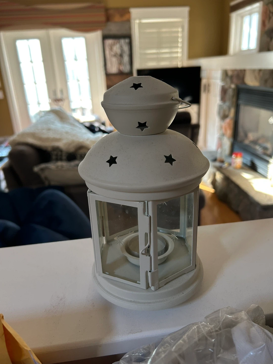 Add a touch of charm to your home with this cute white decorative lantern! It features star cutouts for a whimsical look.