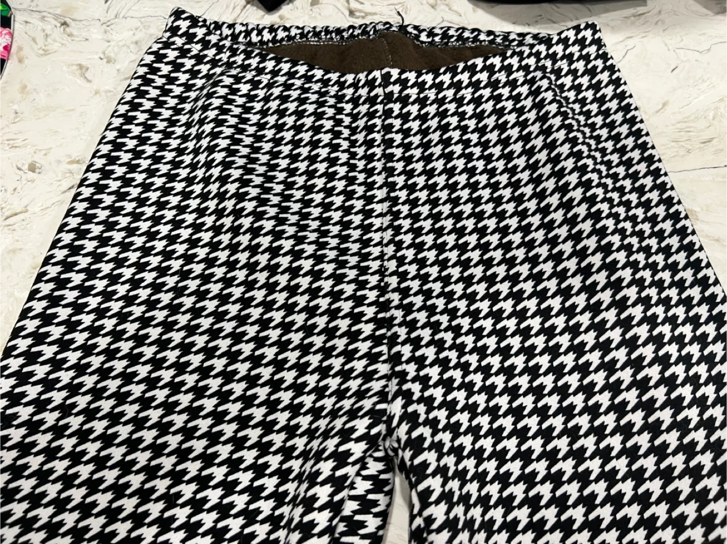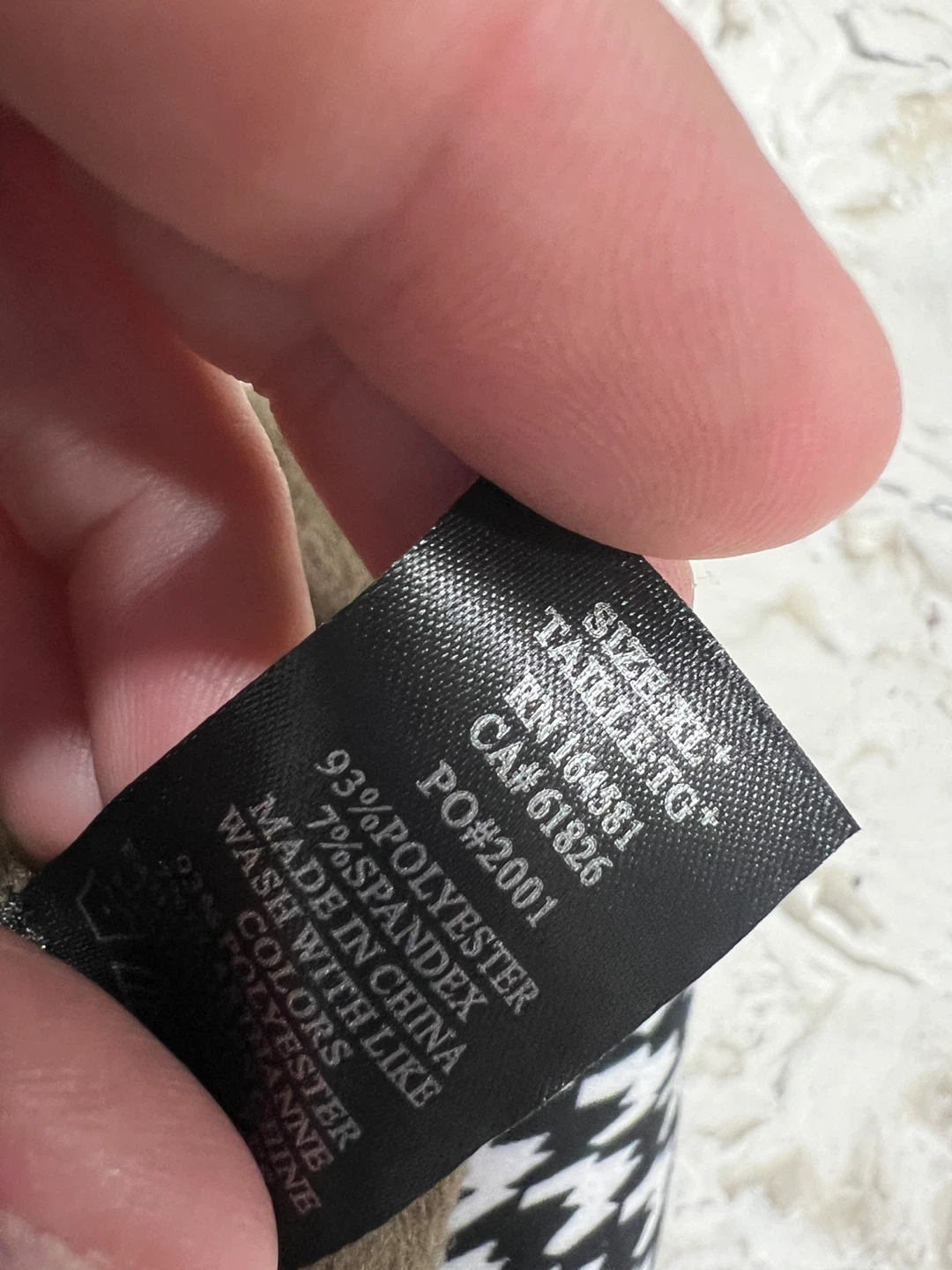 Selling a pair of Tart Collections leggings in a black and white houndstooth pattern. They are a size XL. The material is 93% polyester and 7% spandex, making them super comfy!