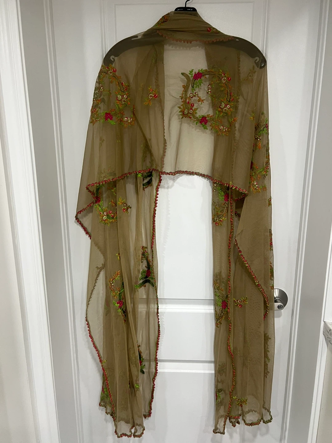 Beautifully embroidered chiffon dupatta, perfect for adding a touch of elegance to any outfit! The delicate floral design is eye-catching and unique. It's in great condition and ready for a new home