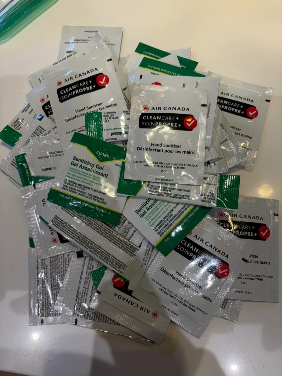 Selling a bunch of individual hand sanitizer packets. Perfect for travel or keeping in your bag for on-the-go sanitizing! Each packet contains 2ml of hand sanitizer.