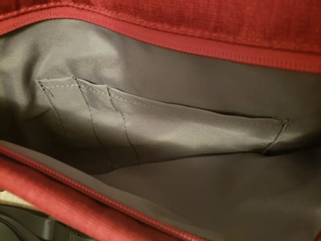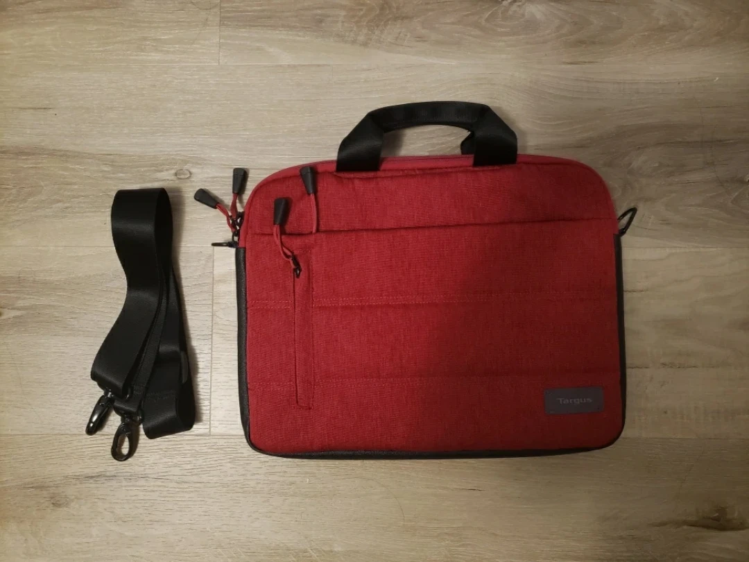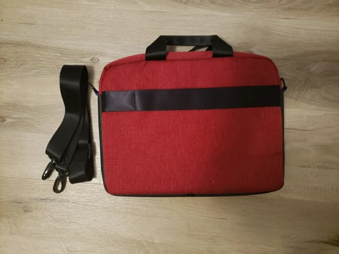has detachable adjustable strap. about 33 x 25 cm in dimension.