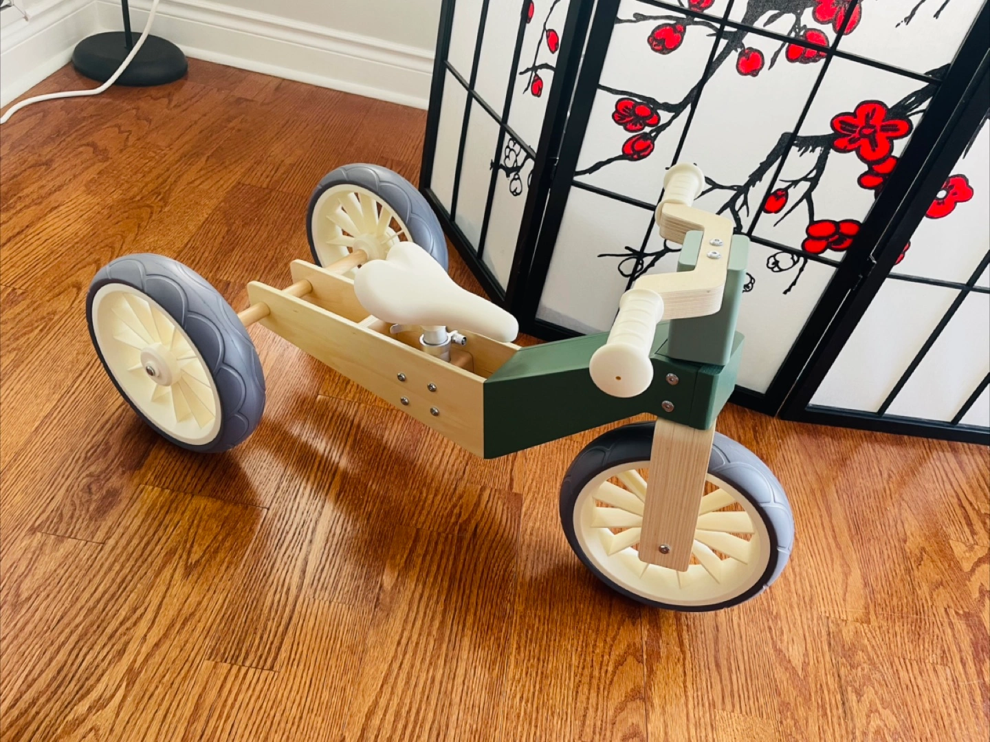 Selling this Coco Village wooden trike because we bought two bikes for our toddler, and she prefers the other. Brand new, built but not used. Perfect for toddlers learning to balance and ride. It's a lovely, sturdy tricycle. Includes the tools and handbook to convert tricycle to two wheeler!