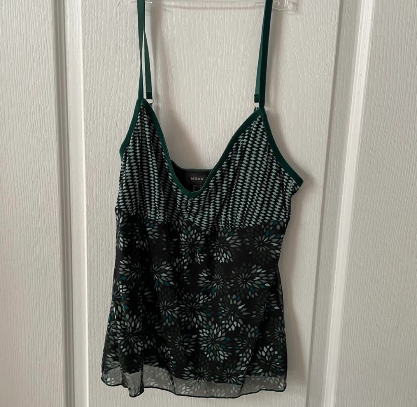 Cute Mexx cami top with a black and floral pattern! It's a size medium and in great condition. Perfect for layering or wearing on its own during warmer weather!