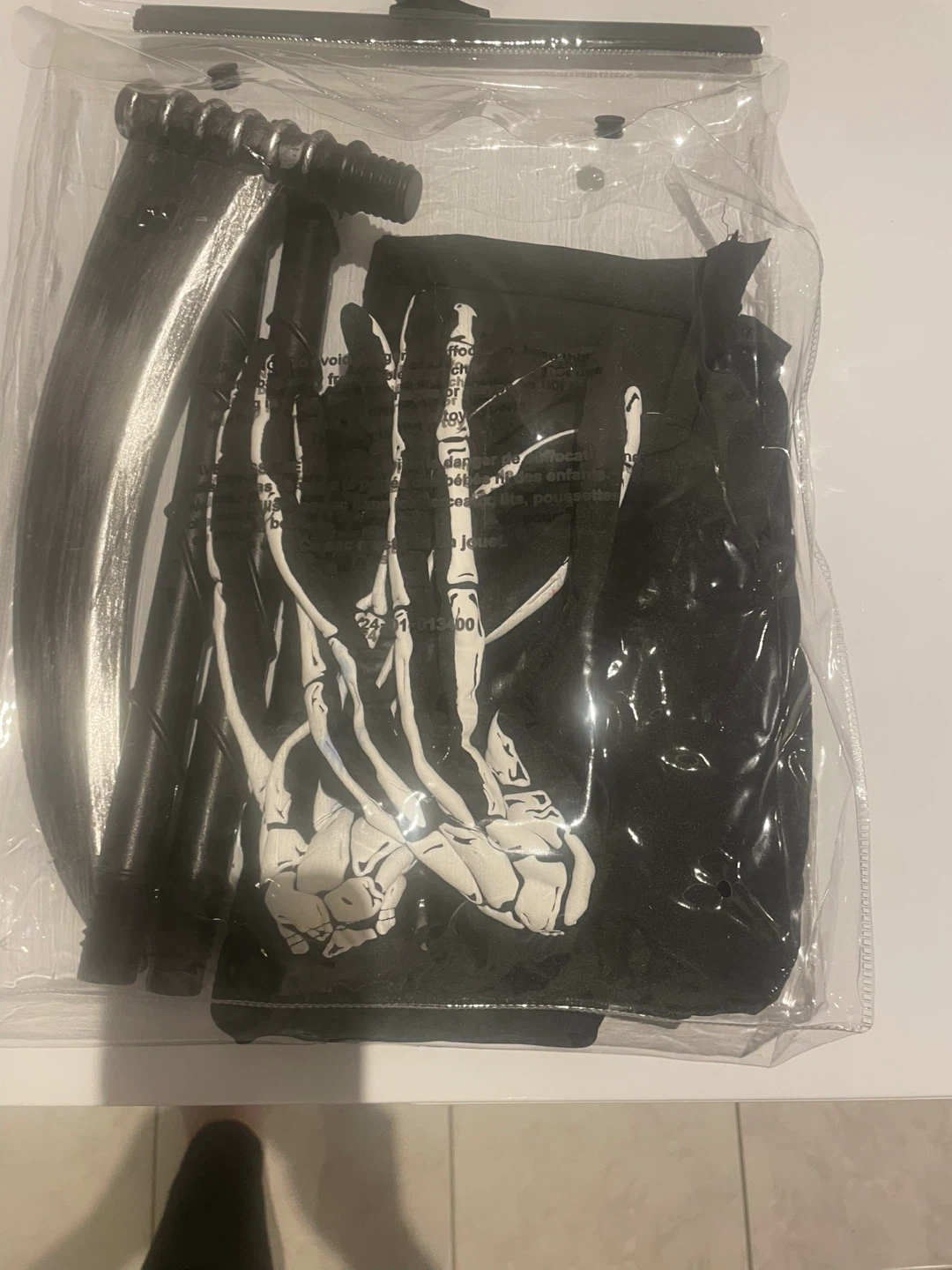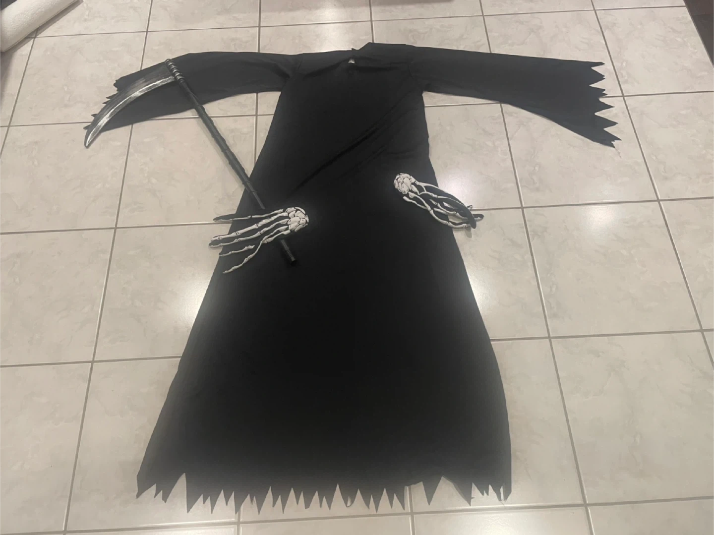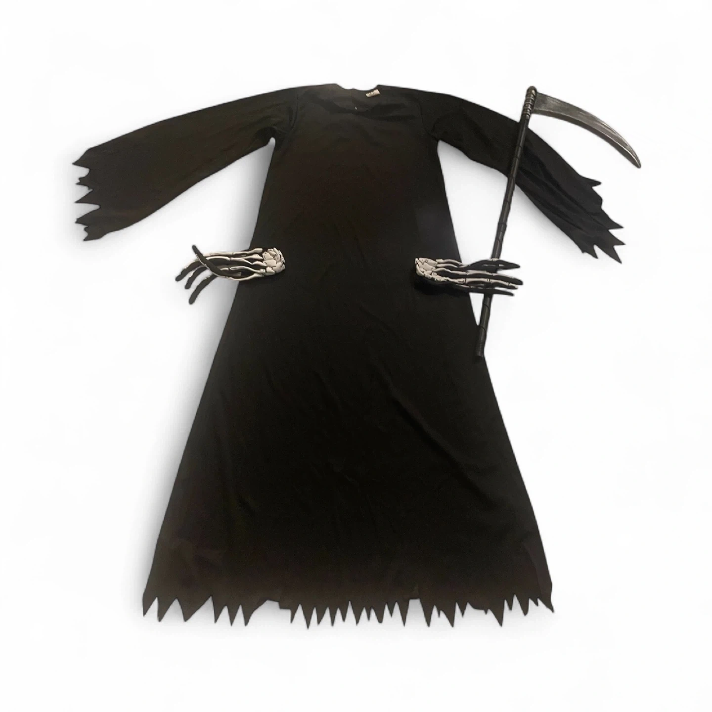 Get ready for Halloween with this Grim Reaper costume! Brand new, It comes with a full face mask+ hoodie, the full robe, scythe, and skeleton gloves to complete the look. Perfect for spooky season!