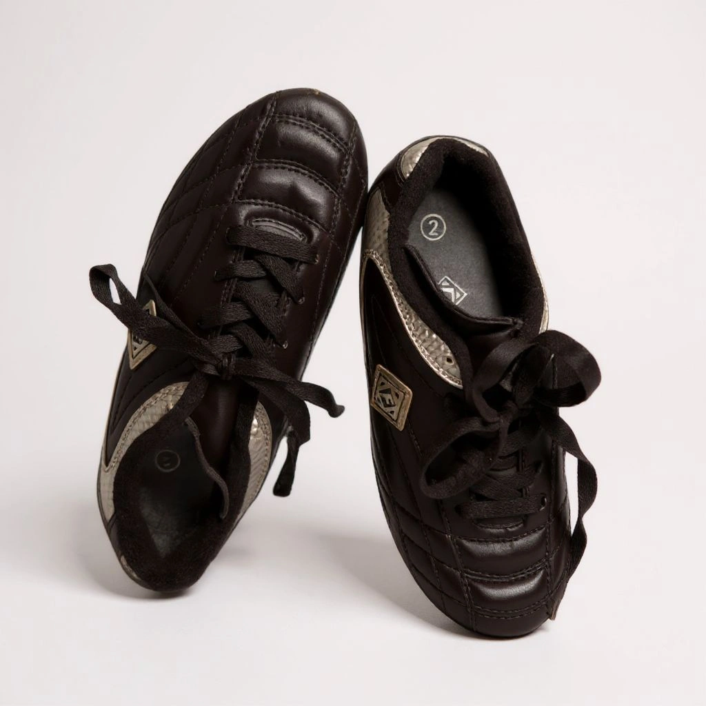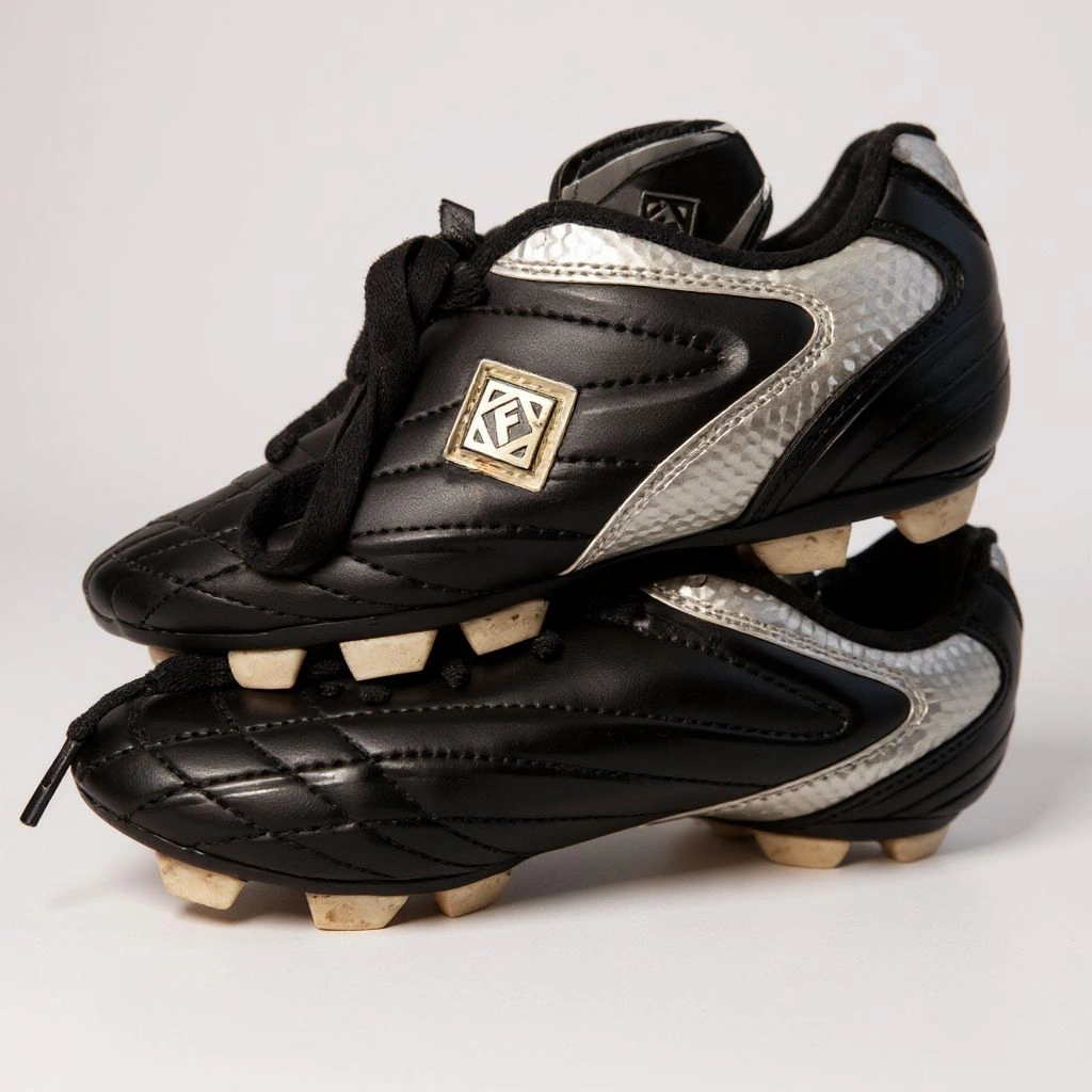 Selling a pair of kids' Franklin soccer cleats in black and silver, size 2! They're in great shape and ready for the field.
