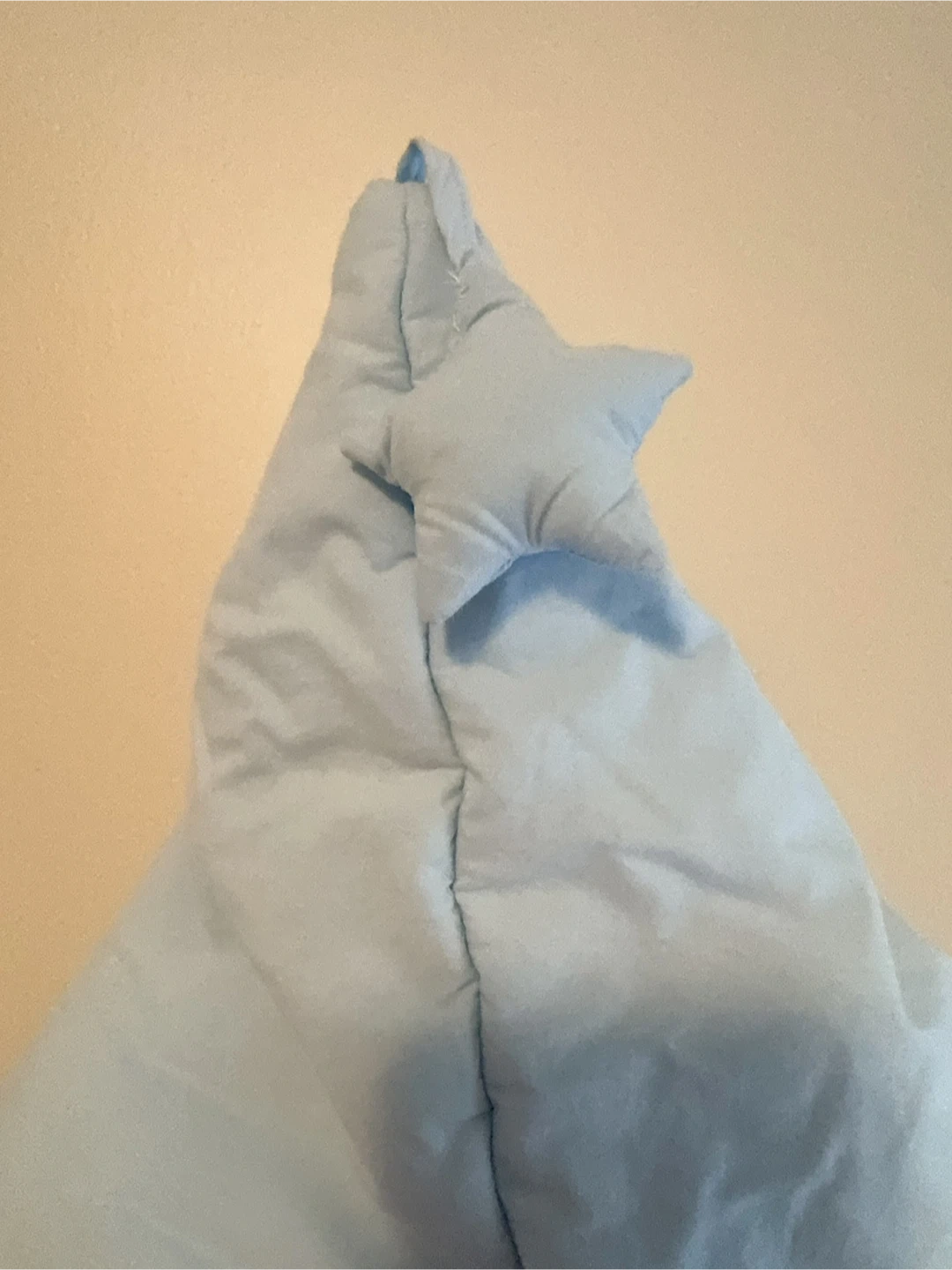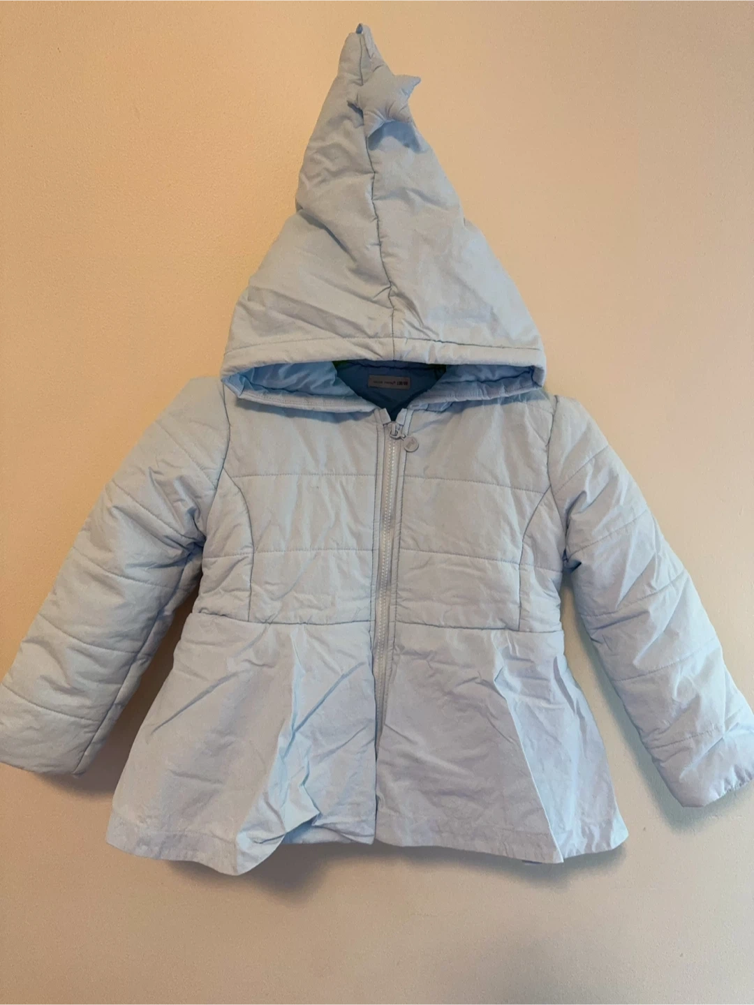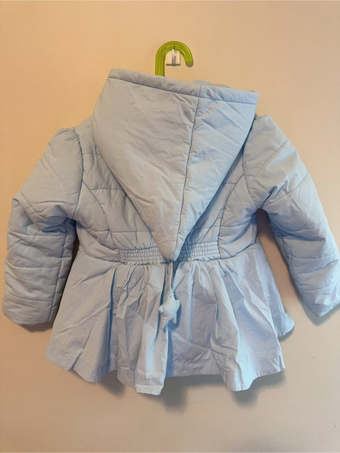 Super cute light blue puffer jacket with a star on the hood! 100% Cotton surface, 65% Cotton inner layer. It's in great condition and perfect for keeping your little one warm and stylish during the colder months