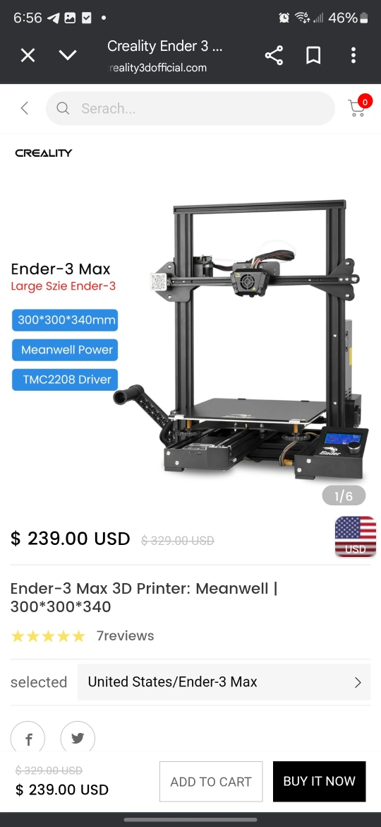 Selling a Creality Ender-3 Max 3D Printer. From the screenshots, it looks like it was originally $239 USD. It has a large size Ender-3 and Meanwell power.