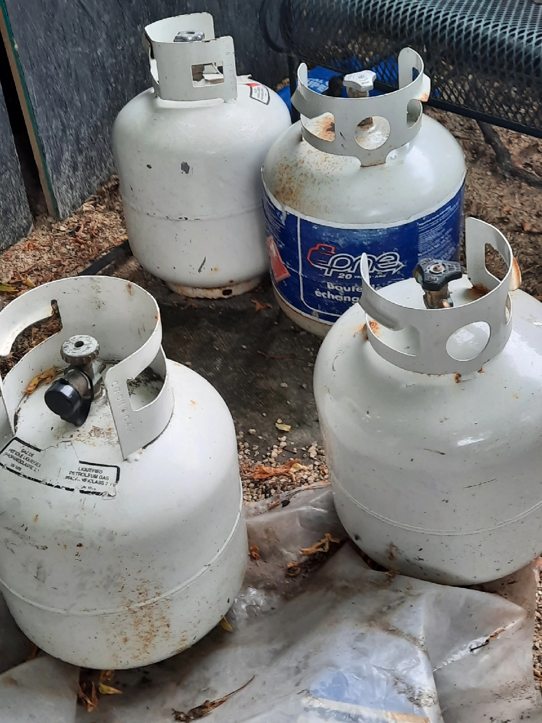 Selling some 20 lb propane tanks. They are a bit weathered, but still functional. Great for BBQs or camping! 15each