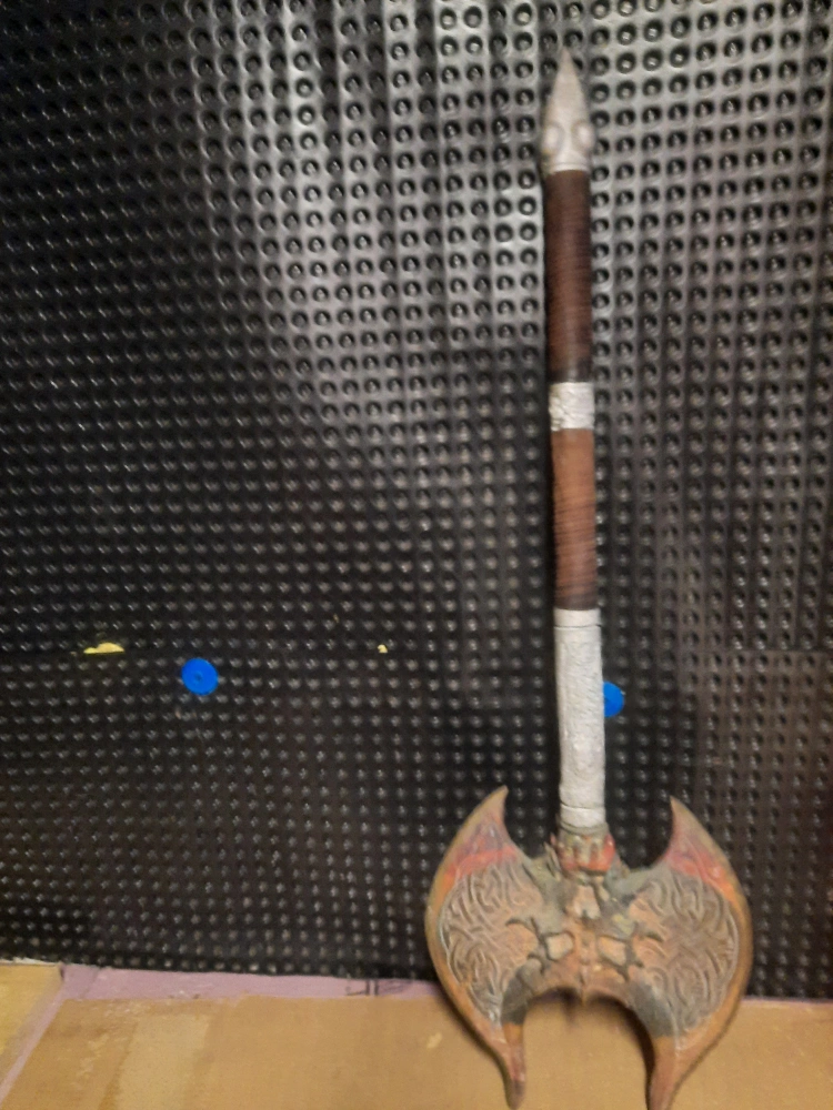 Selling a battle axe. It has an intricate design on the blade.