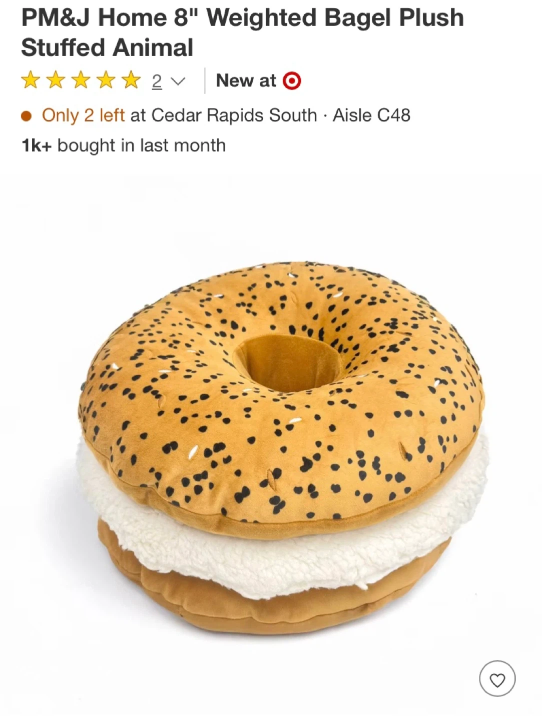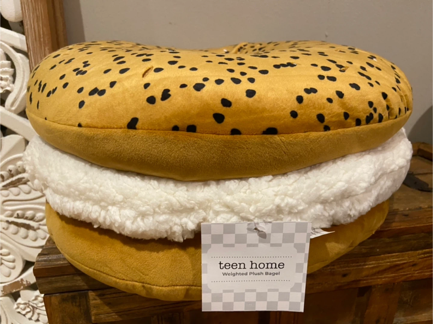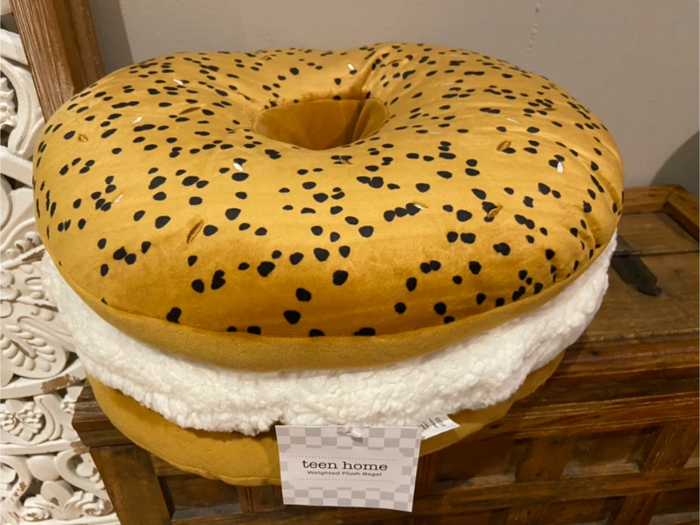 New with tags Weighted Bagel Plush 15” diameter, 7” height 2 available $20 each (retail $35 plus tax) Pickup in Whitby